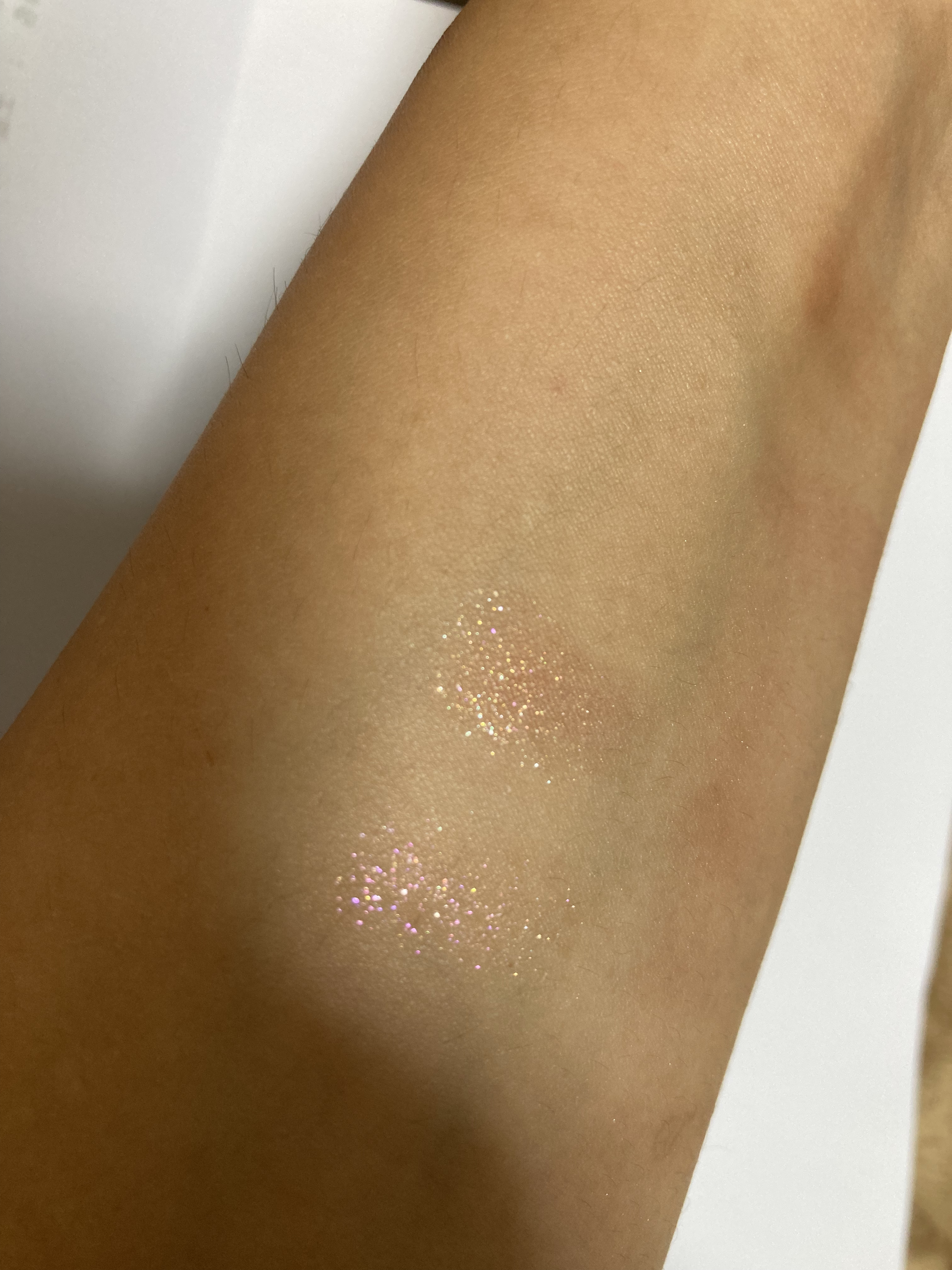こんばんは🌙⚠️四枚目目のアップ有り⚠️今日は先日購入したアイシャドウを買ってメイクをしたので参考に載せておきたいと思います🙌ヴィーナスマーブルの9色のパレットとミシャのプリズムグリッターの画像右を使いました🙌涙袋にたっぷりいれて黒目の位置に...