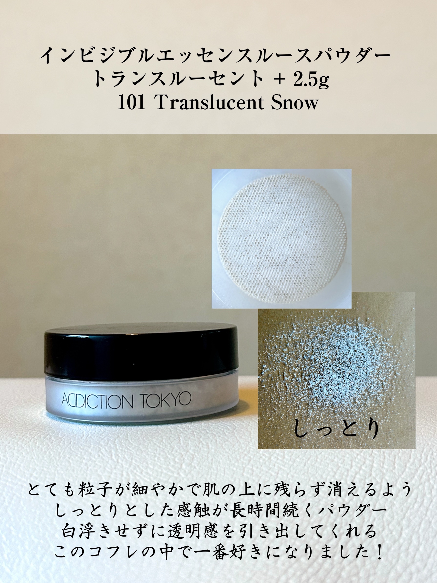 ホリデーコレクションって、すごく華やかで豪華で、普段には無い特別感に溢れてますよね✨ それはそれですごくテンション上がるんですけど、ADDICTIONのベースメイクアップコレクションは超実用向き。 ミニサイズのファンデ、デイクリーム、パウダーに、クレンジングとポーチまでついて、これ一つでベースメイクがほぼ完成します。 ファンデーションは前にも使ったことあったのですが、程よいカバー力とツヤ感がすごく良いです✨