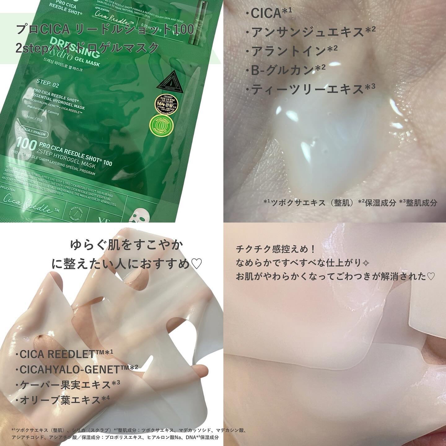 肌馴染みに合わせて集中ナイトケア🌙 貼る美容液で理想の美肌を目指そう❤️ リードルショット100 2ステップハイドロゲルマスクは簡単2ステップ♡ ①上段はカラーリードルショット ②下段のハイドロゲルマスクを20〜40分後剥がします。 密着力がすごくて激しく動いてもぜんぜん剥がれなかった! 20分でもしっかり保湿されててお肌ひんやり気持ちいい💚