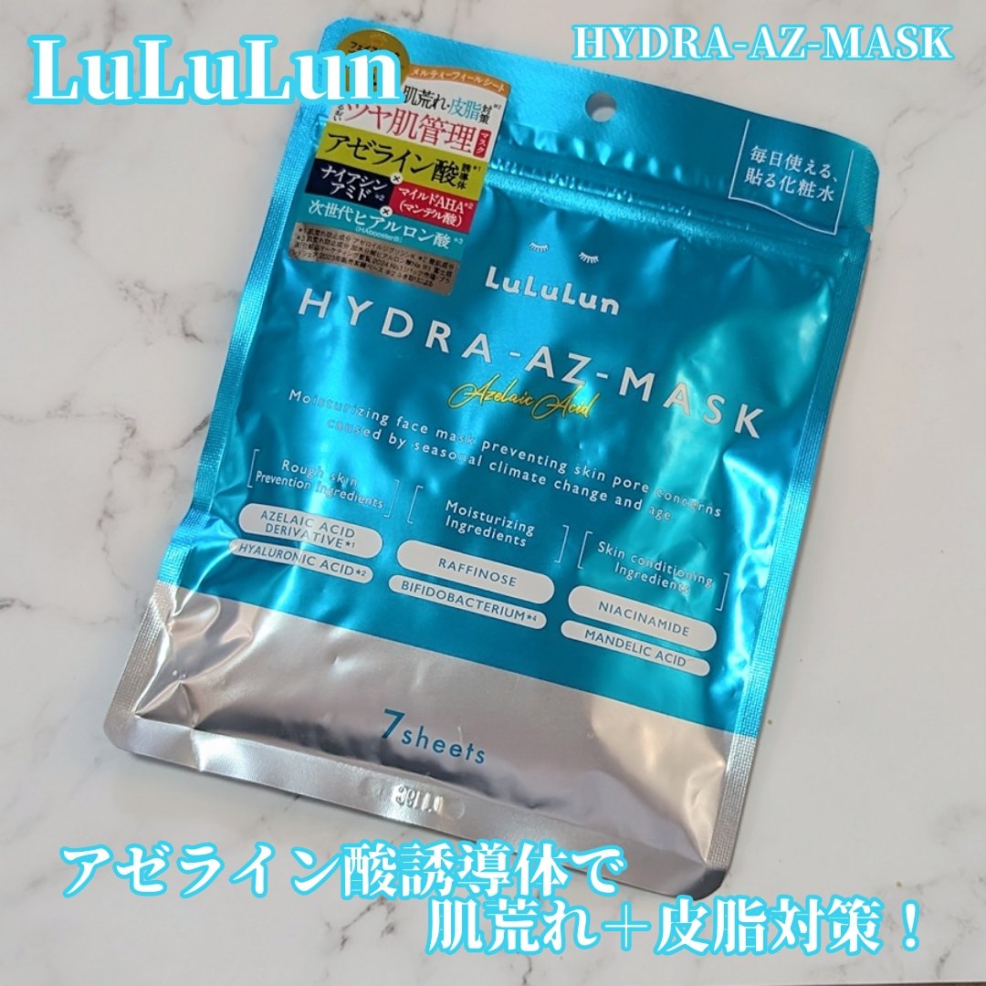 ルルルンハイドラAZマスク7枚ルルルンのモニター企画に参加しています化粧水の代わりに使用出来るデイリーマスク肌トラブル・毛穴・肌荒れ・皮脂ケア💙🌿アゼライン酸誘導体**肌荒れ防止成分:アゼロイルジグリシンK ※ふき取りによる🌿次世代ヒアルロン...