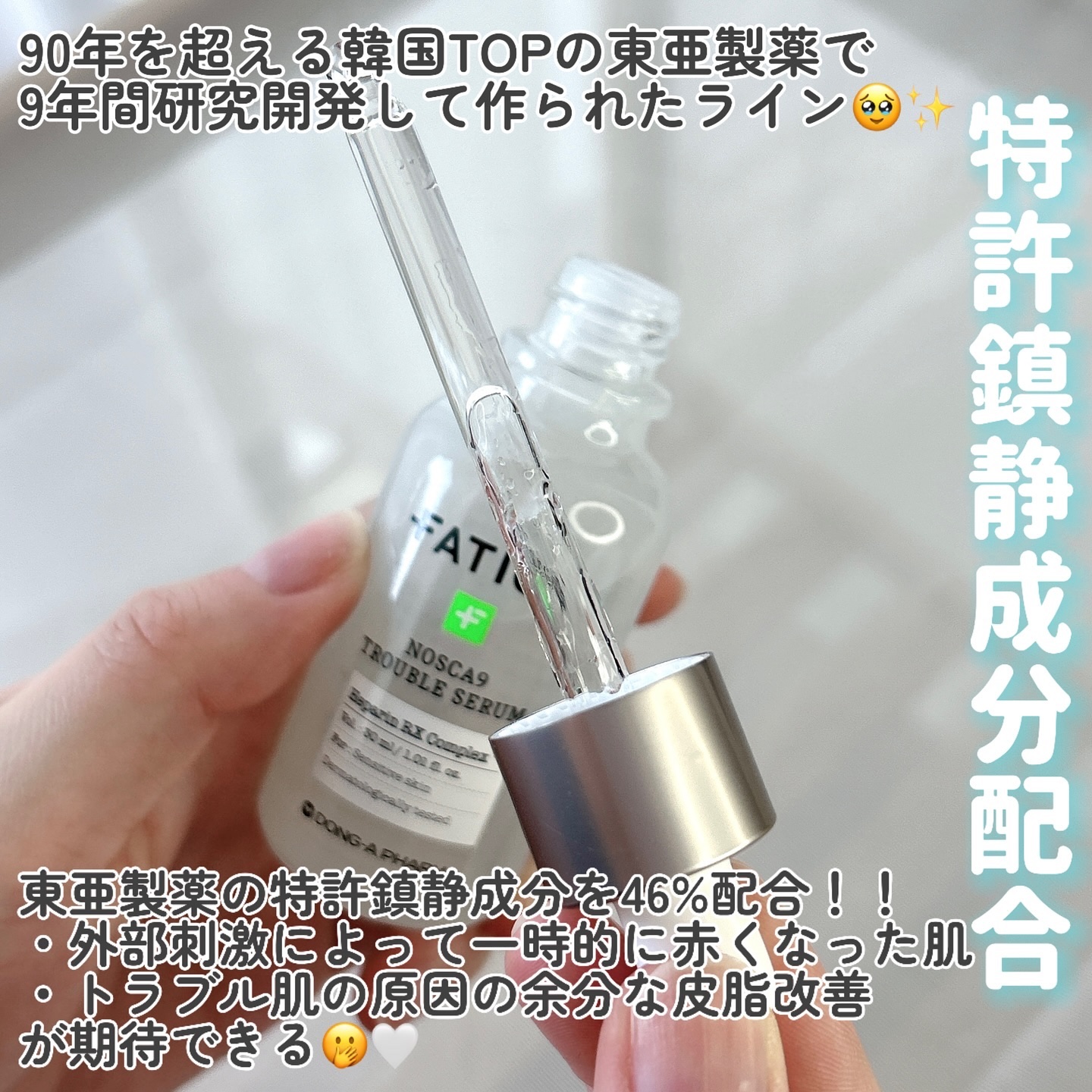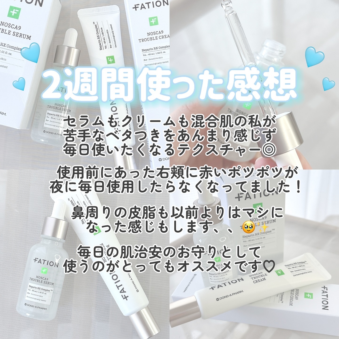 𖧷~ノスカナイントラブルセラム~𖧷𖧷~ノスカナイントラブルクリーム~𖧷FATIONは敏感肌のために誕生したダーマソリューションスキンケアブランド!90年以上の歴史をもつ韓国の大手製薬会社「東亜製薬」が9年かけて研究・開発!!𖧷ノ...