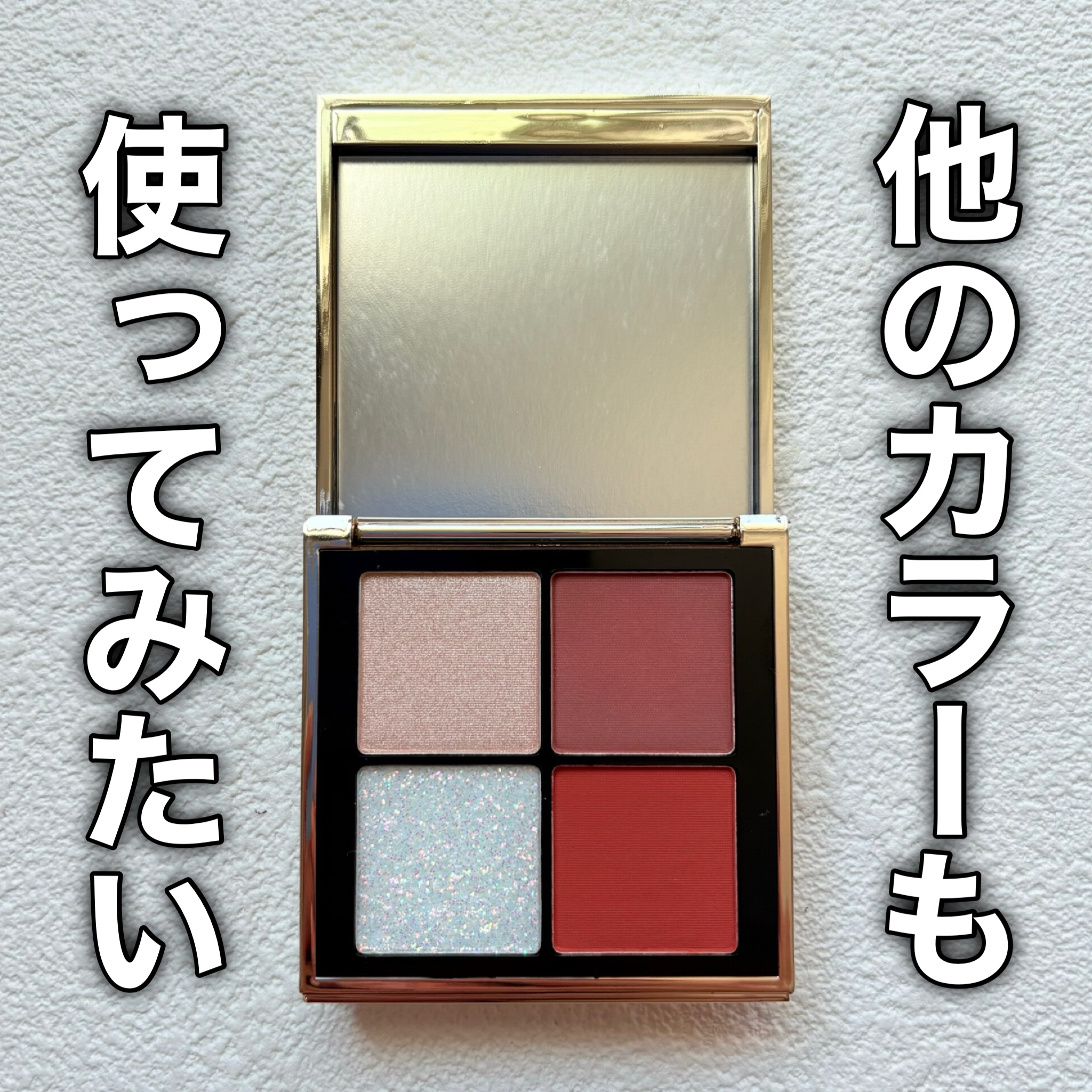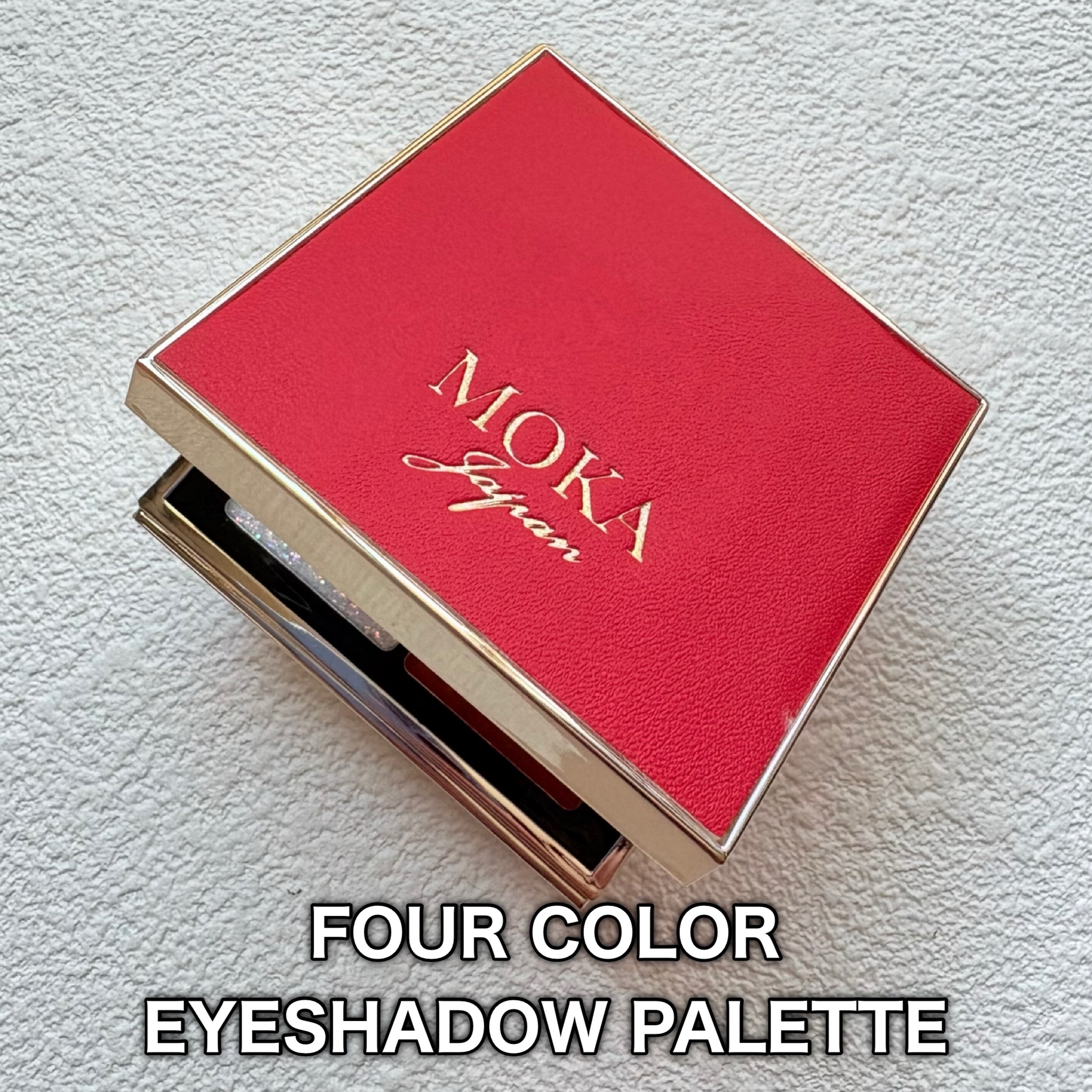 MOKAJapancosmetics4色アイシャドウパレット。赤色のレザーとゴールドのパケおしゃれ✨マットカラー2色、上品なツヤ感ハイライトカラー、大粒ラメグリッターの構成で全部粉質良くて感動した。デイリー使いしやすいカラーも◎発色も良くて好...