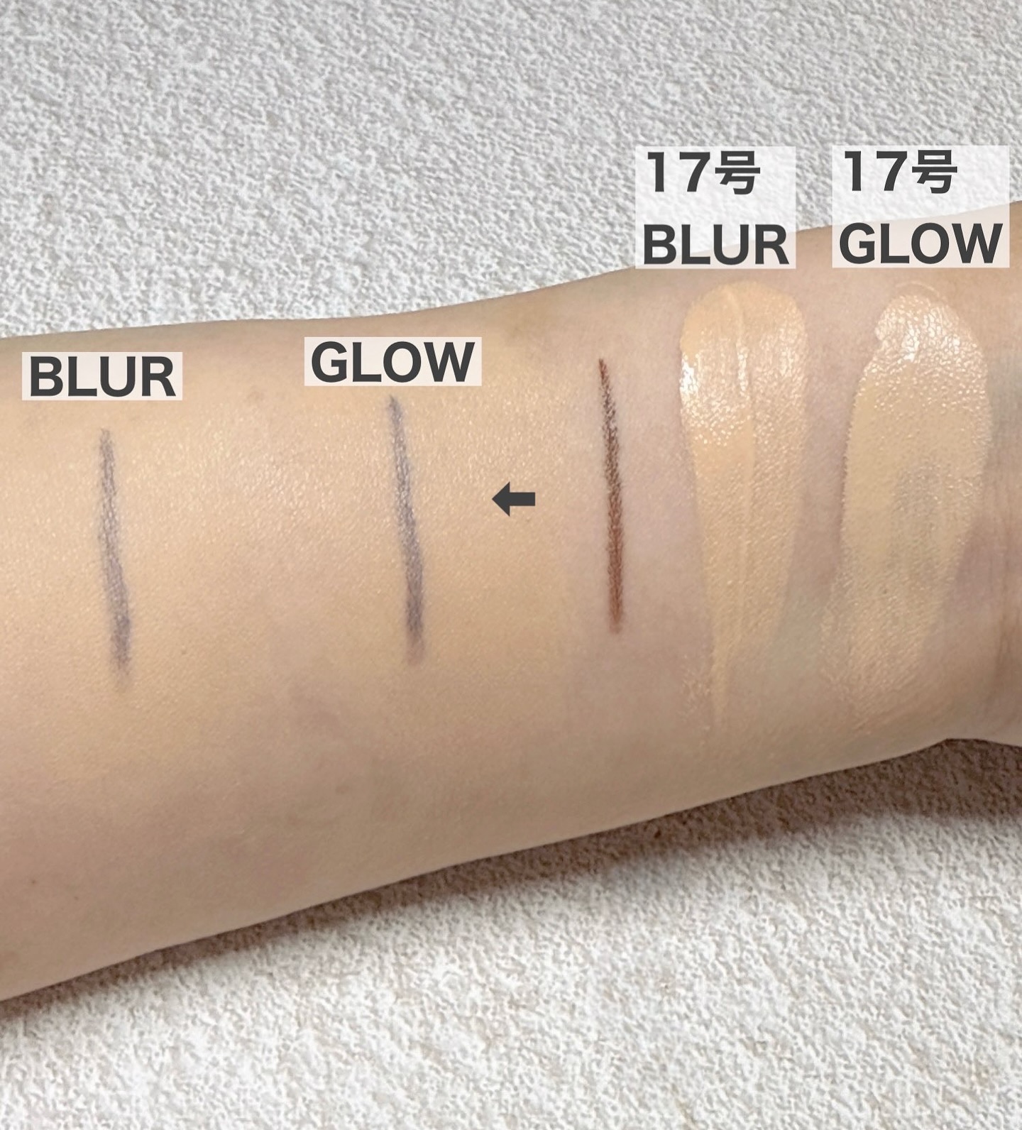 テクスチャーはサラサラだけど、飛び散るわけではなくて吸い付いてくる感じでした。 グリッターは、湿式のウェットさと押すとムニっとして、ちょっとゼリーテイストな気がします。ギラギラすぎなくて使いやすかったです。 ⑥はピンクも混ざっていてとても可愛い。アイスクリーム屋さんのストロベリーチーズケーキみたいな🍓これも、白すぎなくて肌馴染みの良い白系なので使いやすかったです。