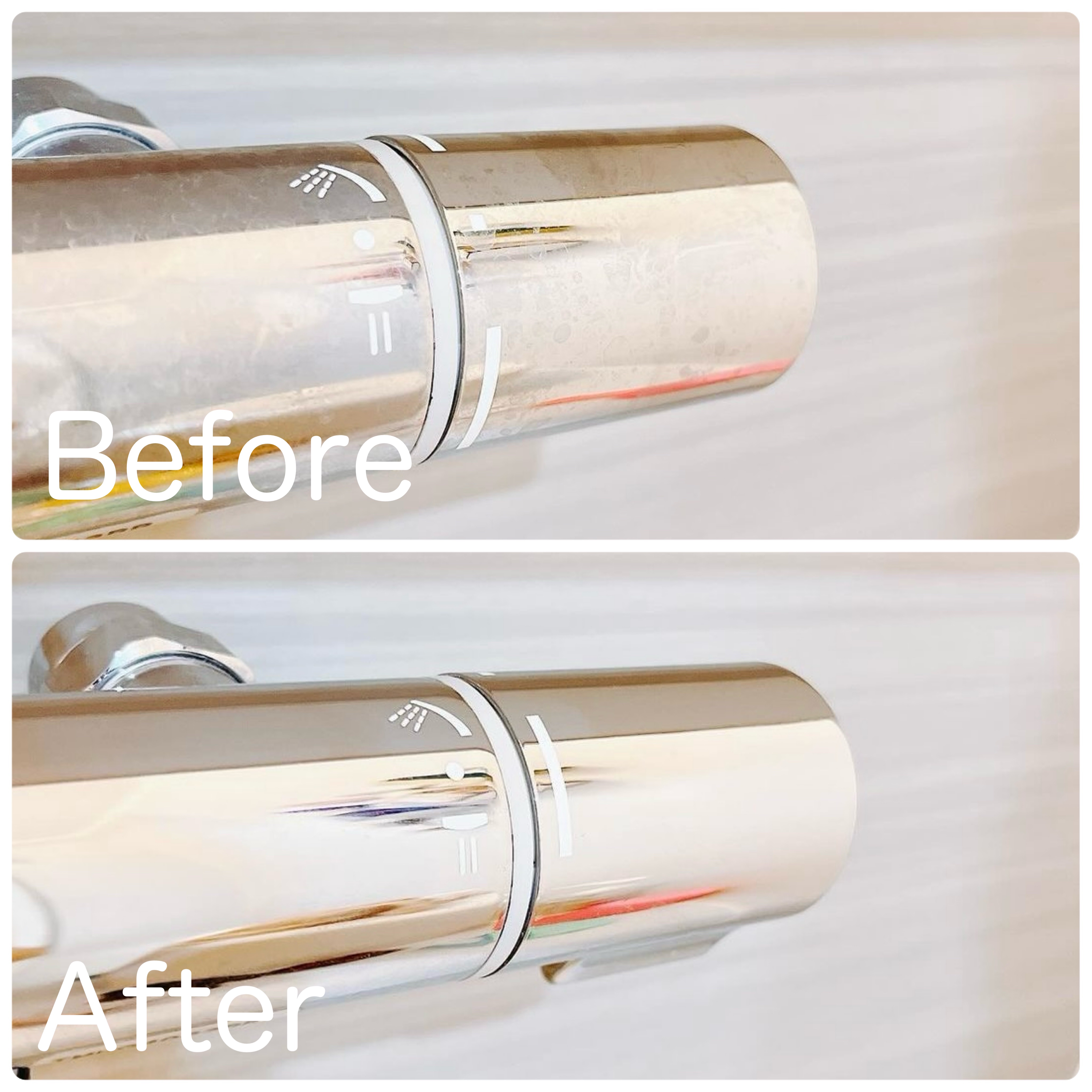 マジックリン EXPOWERの水アカ用スプレーです。掃除が得意ではなく、普段はかなり省エネでお掃除しており、水アカは無視しがち。 お風呂の蛇口の水アカにしゅっとスプレーして、時間はあまりおかずにすぐ拭き取り水で洗い流してみたら、それだけでピカピカ!水アカってこんなにすぐキレイになるもんでしたっけ? 今回は太っ腹なことに、新シリーズの3商品もいただいたのです!強力カビハイター EXPOWER、カビ用密着ジェル、水アカ・コゲ用かきとりシートなど。