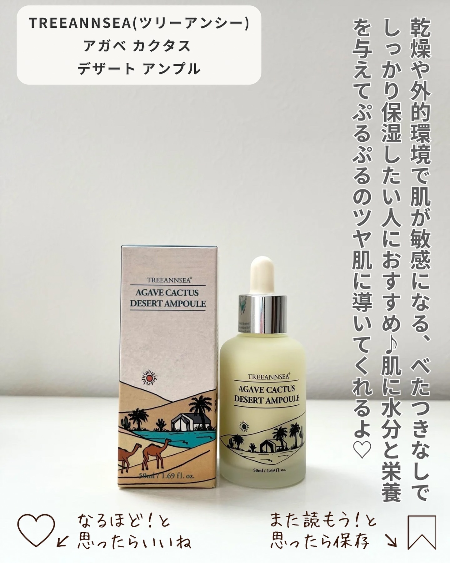 TREEANNSEA(ツリーアンシー)は土(TREE)と海(SEA)、大自然(Mother Nature)から少女・アン(ann)が生まれて肌の老化を遅らせる旅をコンセプトにしたビューティーブランド🌿 保湿力に優れたデザートローズエキスを90%配合したミストで、ベタつかず手軽に水分補給🌟 アガベサボテンを84%以上配合した水分ケアアンプルで、乾燥によりくすんだ肌をなめらかで透明感のある肌に導きます✨
