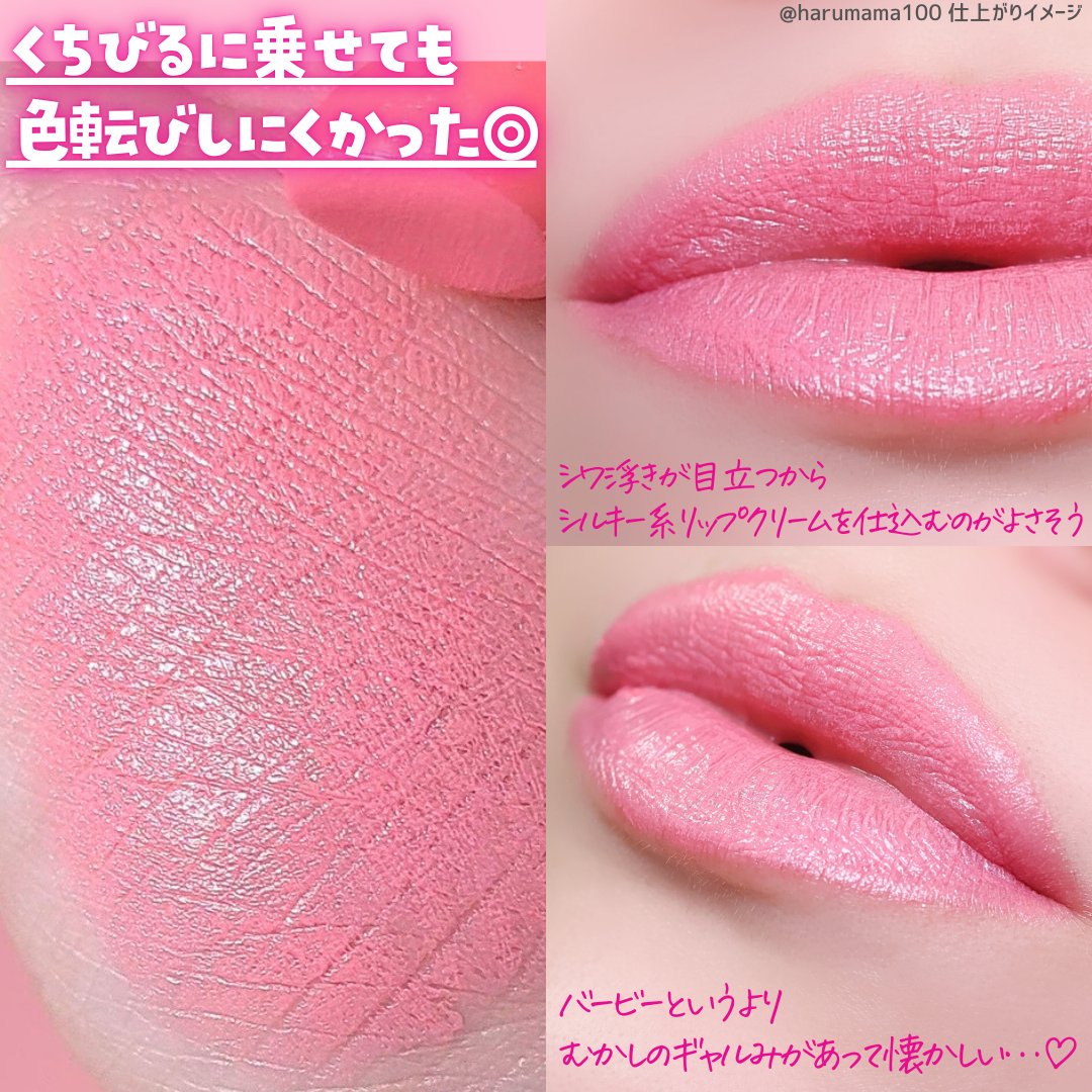 新色の「23 キューピッドピンク」は白みピンクの儚げな血色感で、透けるような奥行きとふんわり温かい雰囲気がかわいい〜♪ ミルキーカラーのリップとも相性が良いから出番が増えそう💕 テクスチャーはしっとりしていてグラデにしやすいし、なじませるとサラサラに変化するから、ベタつかずに使えた!