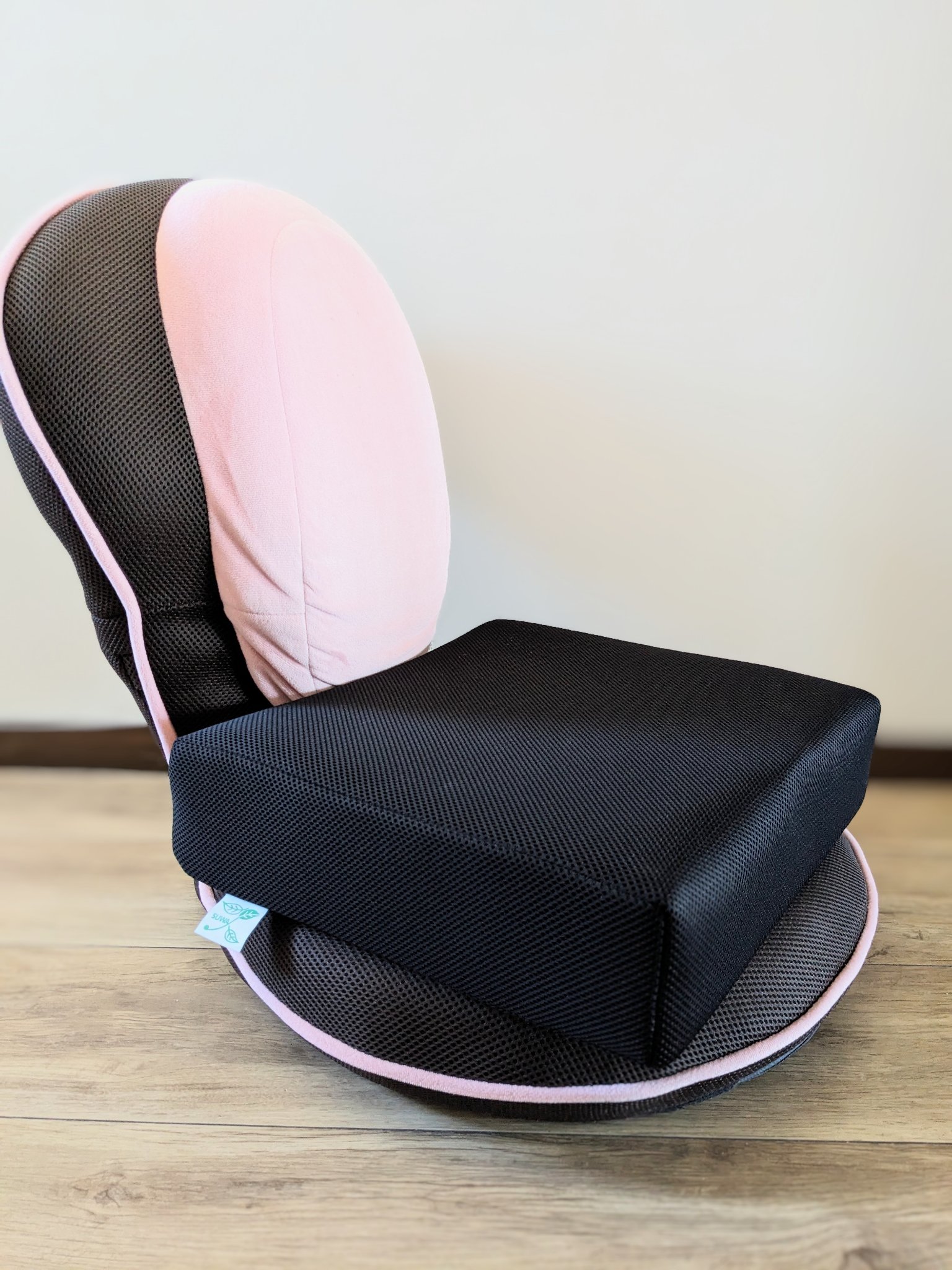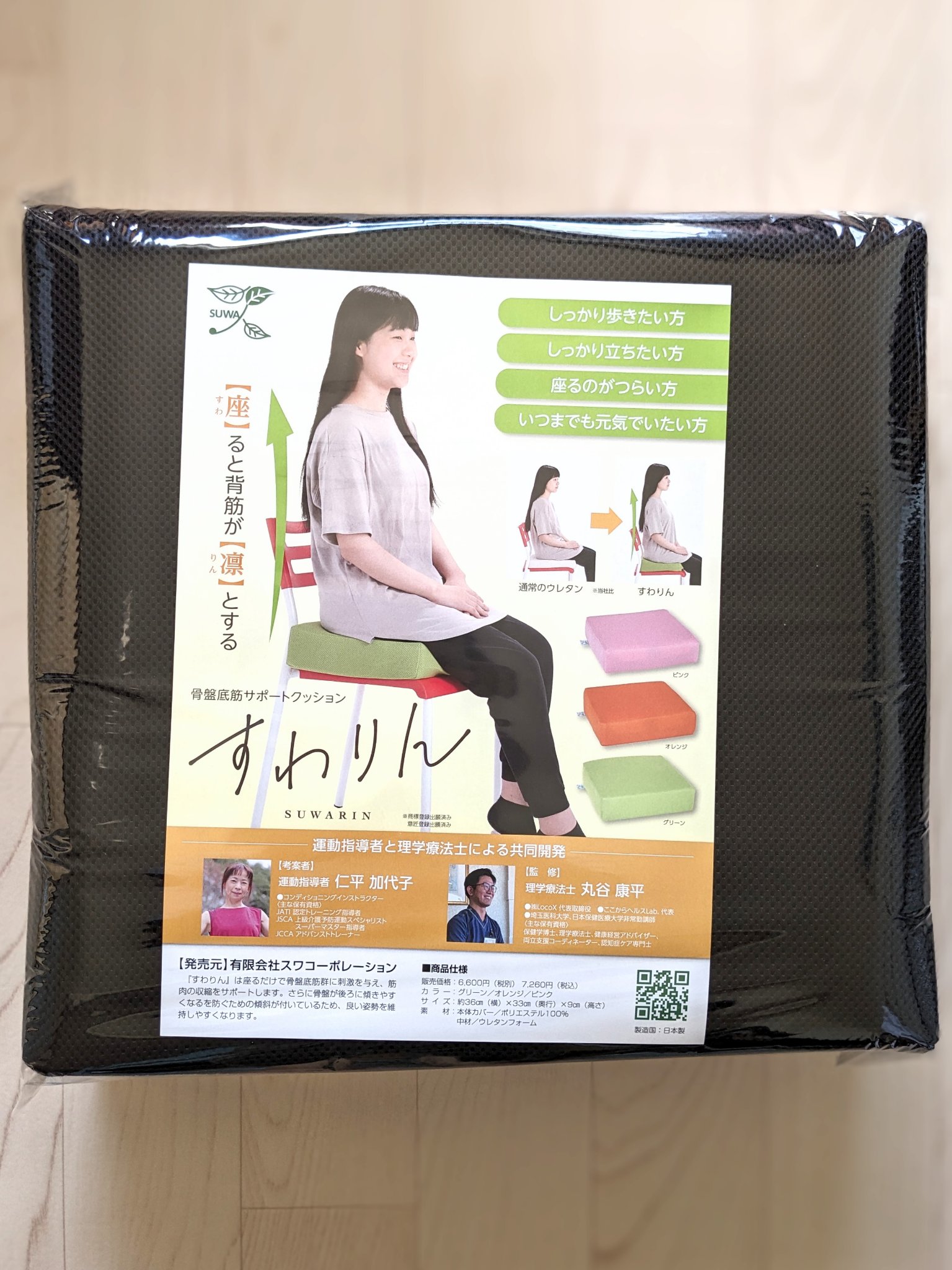 すわりんは、日常的に刺激しづらい骨盤底筋を知覚しやすくし、骨盤底筋に刺激を与え、筋肉の収縮を助けてくれるのだそう☺️ 骨盤が後ろに傾き不良姿勢となるのを防ぐための傾斜が付いているよ✨ すわりんに座ってもらうと前より立ち上がりやすくなったとおばあちゃんは喜んでくれたよ😍