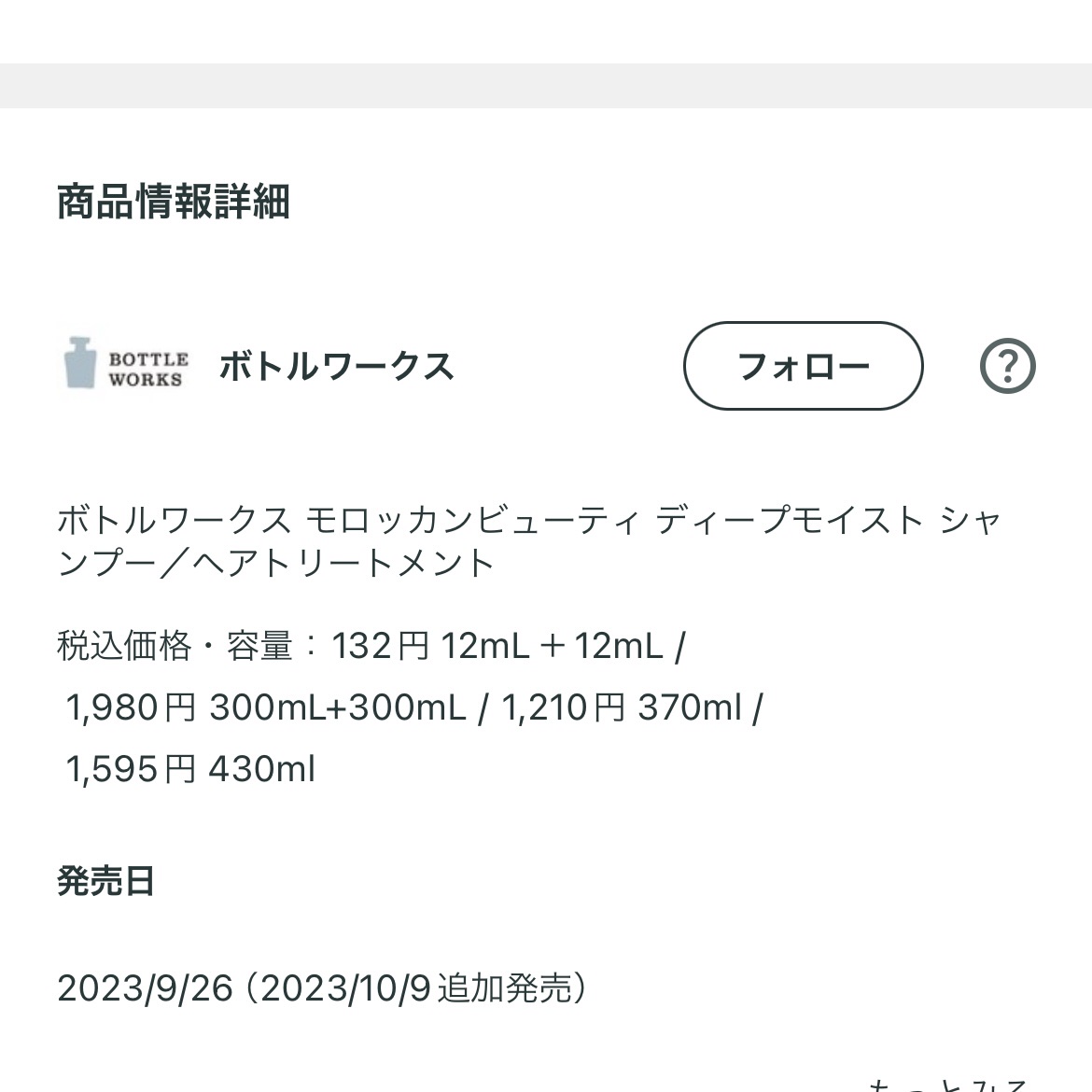 モロッカンビューティ ディープモイスト シャンプー/ ヘアトリートメント | 1,595円 |