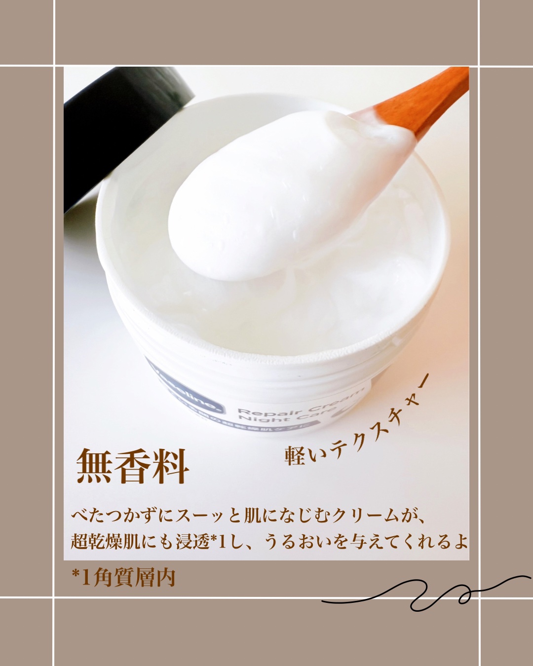 - 全身「夜レチ」クリーム。 レチノール*1・4種のヒアルロン酸配合*2のナイトケア用ボディクリーム。 肌の”ゴールデンタイム”に向けたおやすみ前のケアで、翌朝まで”うるもち肌”が続きます。 うるおいしっかりなのにべたつかずスーっと肌になじむので、ボディクリームが苦手な方にも。 普通肌~乾燥肌・超乾燥肌の方に。無香料。 *1 プロピオン酸レチノール:保湿成分 *2 ヒアルロン酸クロスポリマーNa、ヒアルロン酸Na、アセチルヒアルロン酸Na、加水分解ヒアルロン酸Na:保湿成分