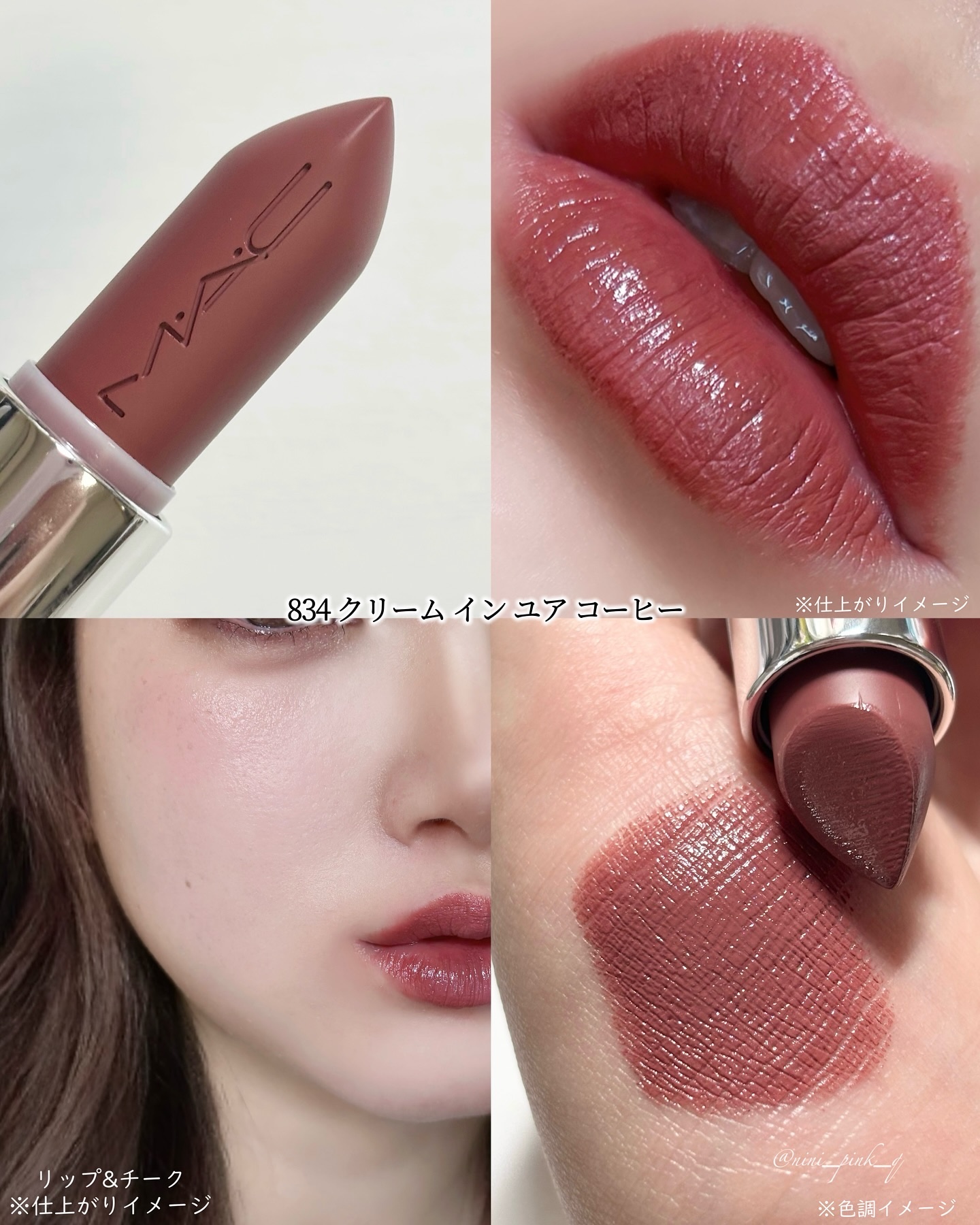 - <価格改定>2025年7月1日より¥4,620(税込)から¥4,400(税込)に改定いたします。 保湿成分をM・A・C史上最高*濃度で閉じ込め 驚きの濃密発色・贅沢なつや・うるおいで、つやオーラリップを作る #美容液サテンリップ が登場。 ①美容保湿成分をM・A・C史上最高*1濃度で配合した、#美容液サテンリップ: 新・マキシマルスリークサテンリップスティックは、高発色でありながら、乾燥レスなサテンのつやをまとわせます。 その秘密は、うるおいを作り出す厳選した天然由来の美容保湿成分をM•A•C史上最高*1濃度で配合しているから。美容の果実と言われる、ザクロから抽出されたザクロ花エキス*2をはじめ、ローズヒップオイル*2、ユチャ種子油*2を配合しています。 乾燥しがちな唇のすみずみまで濃厚な潤いを与え、みずみずしい仕上がりが続きます。 発色も欲しい、保湿も欲しい、そんな人の為の #美容液サテンリップです。 「発色は良いけど乾燥する」と思われてきたM•A•Cのリップが進化!発色と保湿を両立です。 ②リップ&チークのマルチユース: リップスティックとしてだけでなく、チークとしても使えます。 これ1本で、トレンドのワントーンメイクを簡単に表現できます。 ③毎日のどんなシーンにも使える、厳選された色展開: M•A•Cのリップは、派手な色が多くて、毎日使えない!ということはありません! 毎日の何気ないシーンやビジネスなど、デイリーに使いたいけどトレンド感も欲しい時、 お友達とのおでかけや飲み会、デートなど、おしゃれをしたい時、 パーティやクラブなど、華やかなメイクをしたい時、 厳選された21色の色展開で、どんな時でも、つやオーラのあるあなたへ導きます。 *1 M・A・Cサテンリップの中で *2 保湿成分 2024年10月4日 (金) 全国店舗・M・A・C公式オンラインショップ発売 2024年9月20日 (水) 楽天M・A・C公式ショップ/ZOZOCOSME M·A·C 公式ショップ 先行予約開始