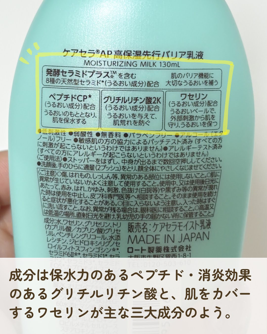 洗顔後すぐに使用することで、肌をうるおいでほぐしやわらげます。 8種の天然型セラミド*(うるおい成分)配合の先行乳液が角層まで深く浸透。 ケアセラは介護の現場で粉を吹くくらい乾燥している肌を改善したくて研究して作られた優しい気持ちの商品ばかりなんだ。 全然ペタペタしない。 シャバシャバしてる。無香料ー!