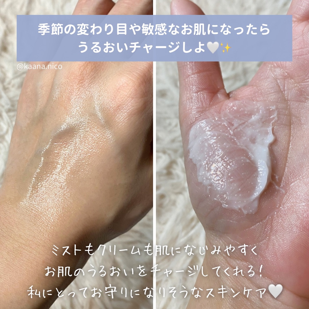 乾燥が気になる時に使いたくなるクリームミスト。 ひとふきすればしっとりツヤ肌に🫧 日中乾燥が気になる時でもクリーム級の保湿力で朝のスキンケア後みたいな潤い感に︎🫶🏻 クリームも保湿力ばっちりで べたつきにくく使いやすい〇 使うほどにうるおいバリアをサポートしてくれます。 使い続けていると肌がゆらぎにくくなった感じがします︎🫶🏻 しっかり保湿したい人や乾燥肌や敏感肌の方はチェックしてみて🪄