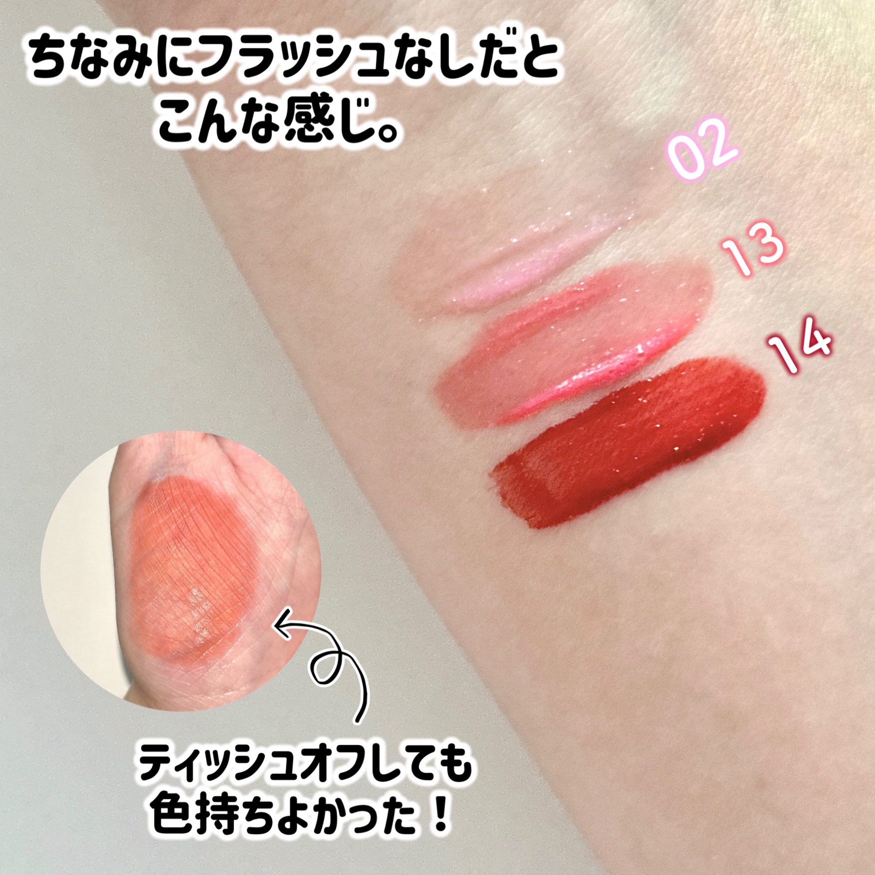 | 指で軽く触るとジェル膜を感じられますし、ツヤツヤぷるぷるのリップに仕上がります! | 詳細を見る | ||