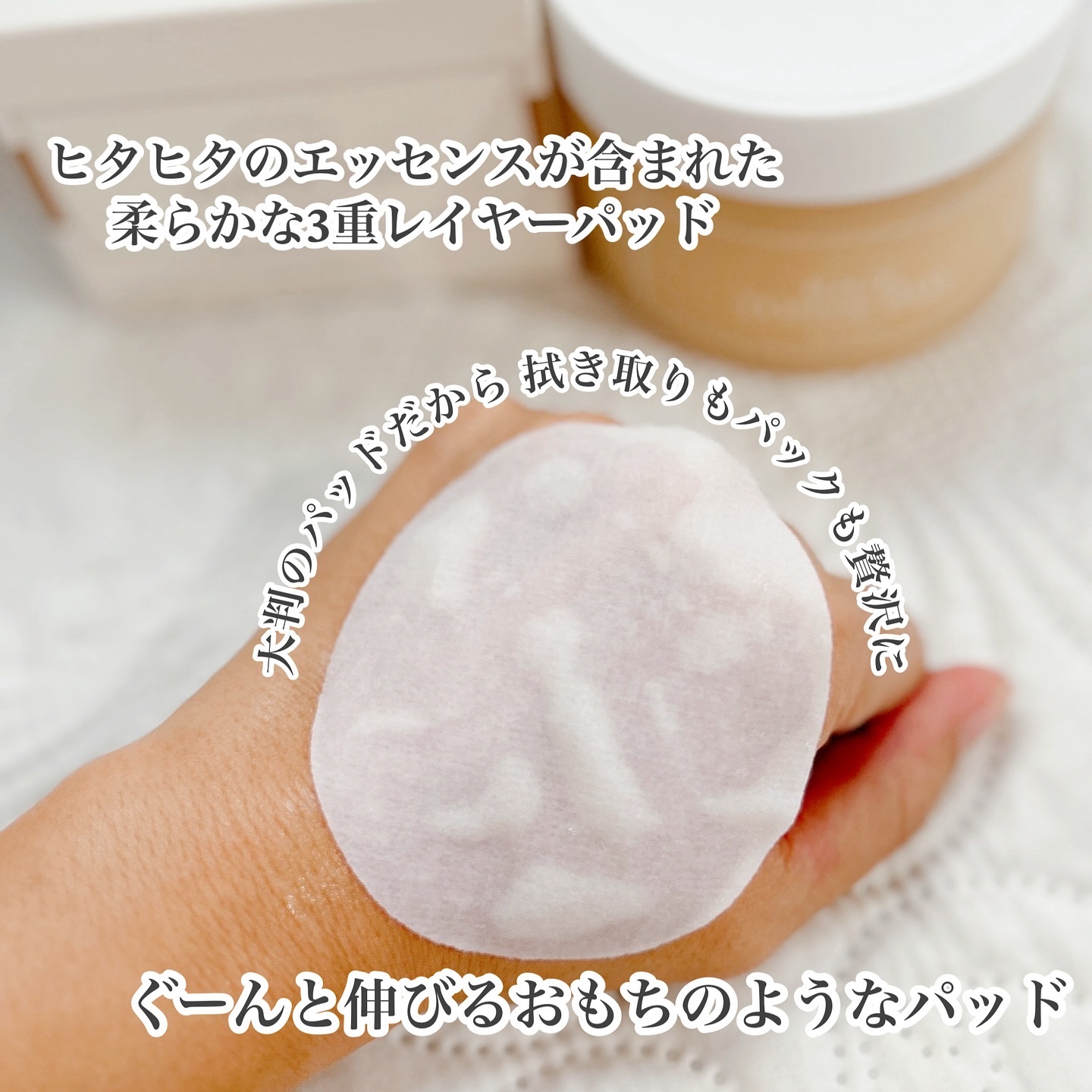 お米の糠に含まれる栄養素たっぷりのトナーパッド 3層トナーパッドで密着度もとても良くて、柔らかくて、潤いがとても良くて使いやすかったです。 気楽に水分チャージできて良いです!