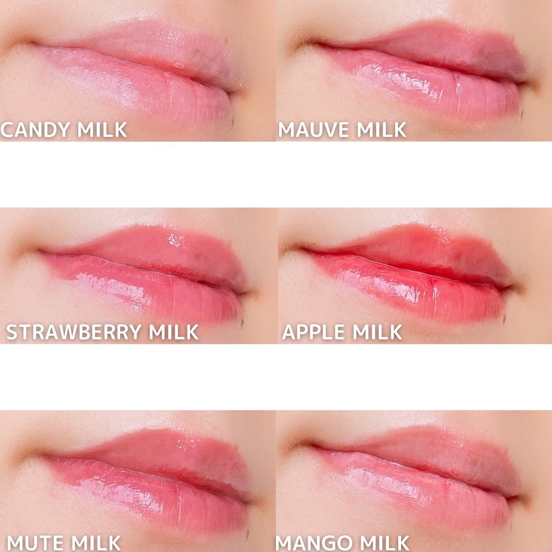 ハートで可愛らしい見た目が乙女心をくすぐるメリーモンドのミルクハートティントリップ🩷新色のアップルミルクとマンゴーミルクを加えた6色をレポしたよ🍼 牛乳のようななめらかなミルク唇を演出 ⇢天然オイルヴィーガンでしっとりなつけ心地 私のイチオシカラーはストロベリーミルクがうさぎ舌になれるカラーでオススメ🐰