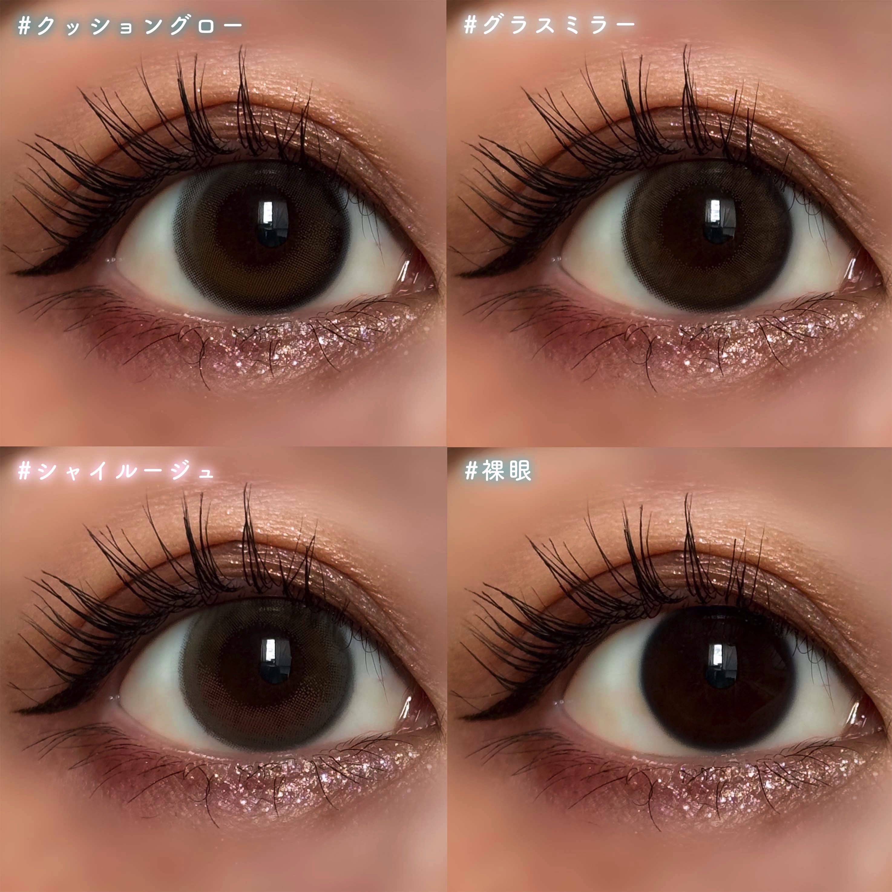- 肌つやを重ねるように瞳にも艶を重ねる 艶というフィルターを重ねて、瞳の表情をかえる“ファンデ―ションレンズ” 「綺麗」と「色気」を両立 ・CUSHION GLOW クッショングロー レイヤリングする程色づく、自信みなぎる上品発色 パールを砕いたような光沢感のドレッシーカラー。 DIA14.2mm /GDIA 13.55mm ・GLASS MIRROR グラスミラー 純度の高いガラスのような、品格を醸し出すレーシィな発色。 瞳を透明感で満たすエレガントなティントブラウン。 DIA14.2mm /GDIA 12.90mm ・GLEAM SHEER グリームシアー 揺れる微光が漂わせる奥ゆかしい気配 透けるような光が、視線に深みを与える。 DIA14.2mm/GDIA 13.20mm ・SHY ROUGE シャイルージュ 恥じらいをこめた血色感と美しさをエレベートするエアリー発色。 宝石のような輝きを塗る、ロージーなブラウンルージュ。 DIA14.2mm /GDIA 13.30mm ・SELENE GLOW セレングロー 肌に溶け込むシマーな発色が、 素肌と一体化するグレースグレーをより美しく引き立てる。 DIA14.2mm /GDIA 13.55mm ・BLISS AURA ブリスオーラ 温もりを帯びた光が残すやわらかな余韻 甘さを含む艶が、視線に華やぎを添える。 DIA14.2mm /GDIA 13.50mm カラーコンタクトレンズの不適正使用による眼障害の危険性等などがあります。 ●コンタクトレンズは高度管理医療機器です。不十分な洗浄・消毒など不適切なケアや、長時間・交換期間を超えた装用により、アレルギー性結膜炎、角膜感染症、角膜潰瘍等の重篤な眼障害が発生する危険性があります ●ご使用前に取扱説明書を確認してください 使用上の留意事項 ●眼科医院等を受診してからお求めください ●眼に異常を感じたら直ちにレンズ使用を中止し、お近くの眼科等で診察を受けてください ●医師の指示にしたがってご使用ください ●コンタクトレンズを装用する場合、自覚症状がなくても、眼科医院等での定期検査を受けてください ●レンズに不具合がある場合は使用しないでください