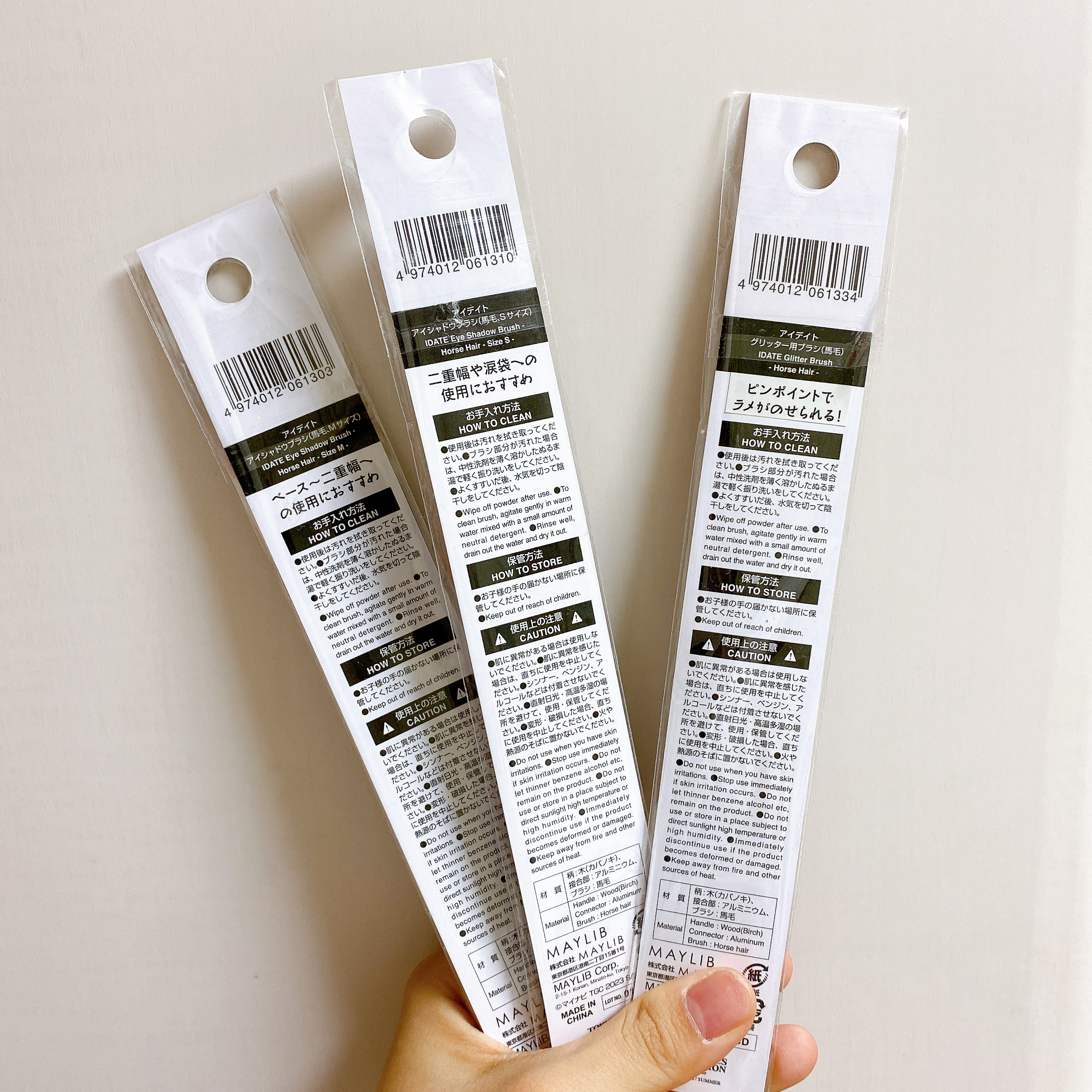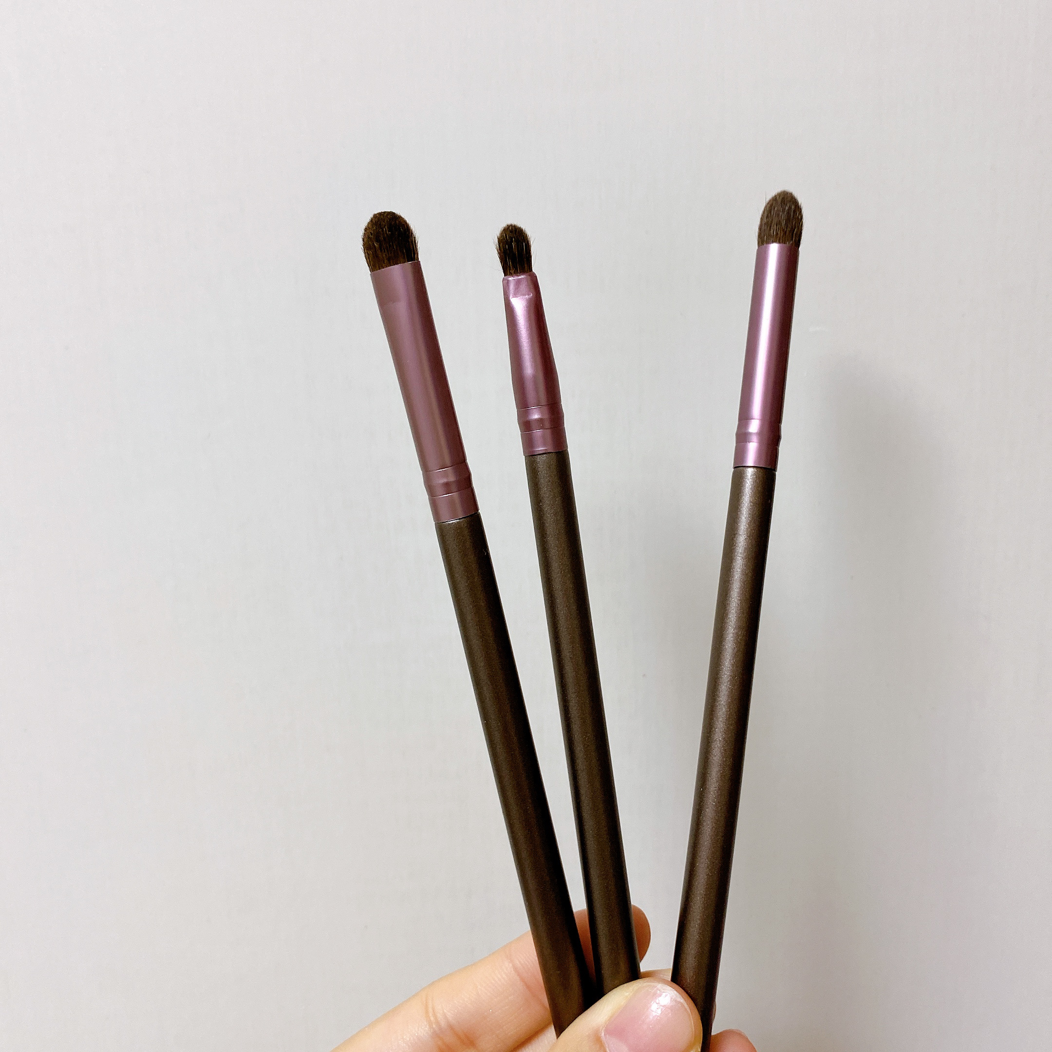 DAISOで馬毛のブラシが買えちゃう驚き! このSサイズは、二重幅や涙袋にピッタリ。 ブラシのコシはあるのに肌あたりが柔らか(短めのブラシなので直角に当てると少し刺激あり)。 小さなブラシなのに粉含みが良く、ラメなどものせやすいのでヘビロテ中。
