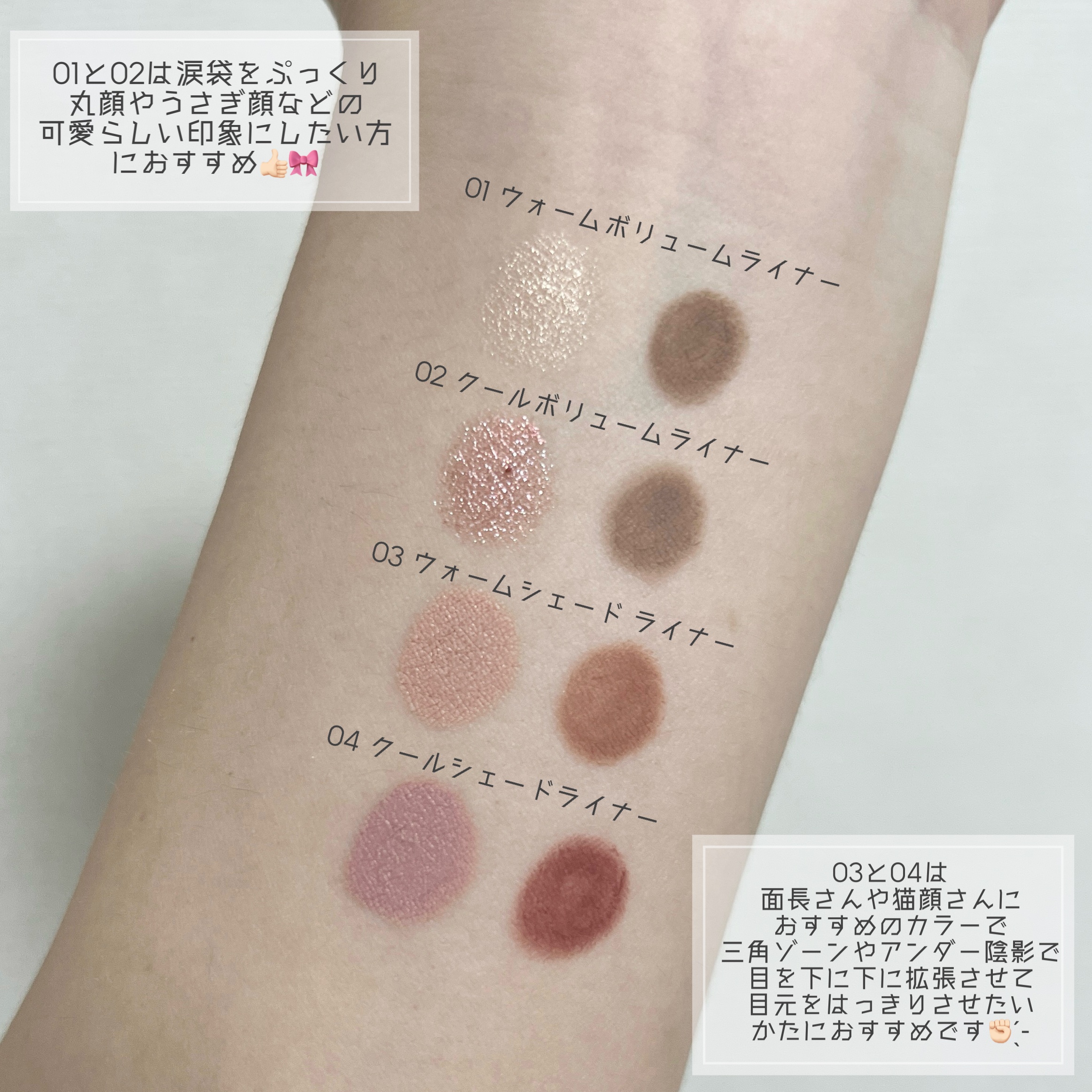 なんとナチュラルなカラー感で大好評のhince「ニューデップスアイシャドウ」がそのままスティックになったよ🥳 柔らかめの芯で、スルスルと簡単に描けちゃう!!涙袋に乗せるカラーは太めでちょうどいいし、影を描くためのカラーは細めで使いやすいところも良かった◎ 軽くなぞるだけで簡単に涙袋メイクができるから是非チェックしてね!!