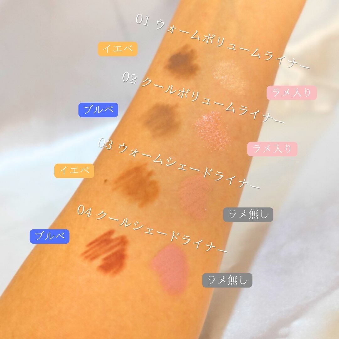 - 【01 ウォームボリュームライナー】 シャドウ:コチニール(カルミン)を使用しています。 【シャドウ】ジメチコン、フェニルトリメチコン、トリメチルシロキシケイ酸、合成ワックス、ステアリルジメチコン、マイクロクリスタリンワックス、テトライソステアリン酸ペンタエリスリチル、合成フルオロフロゴパイト、キャンデリラロウ、ホウケイ酸(Ca/チタン)、ホウケイ酸(Ca/Al)、シリカ、ジステアルジモニウムヘクトライト、フェノキシエタノール、イソステアリン酸ソルビタン、酢酸トコフェロール、炭酸プロピレン、酸化スズ、マイカ、酸化チタン、酸化鉄、カルミン 【ライナー】メチルトリメチコン、トリメチルシロキシケイ酸、ホホバ種子油、合成ワックス、マイクロクリスタリンワックス、ジメチコン、合成フルオロフロゴパイト、酸化鉄、シリカ、オクチルドデカノール、ポリブテン、ジステアルジモニウムヘクトライト、ポリヒドロキシステアリン酸、フェノキシエタノール、酸化チタン 【02 クールボリュームライナー】 シャドウ:コチニール(カルミン)を使用しています。 【シャドウ】ジメチコン、フェニルトリメチコン、トリメチルシロキシケイ酸、ホウケイ酸(Ca/チタン)、ホウケイ酸(Ca/Al)、合成ワックス、ステアリルジメチコン、マイクロクリスタリンワックス、テトライソステアリン酸ペンタエリスリチル、シリカ、キャンデリラロウ、ジステアルジモニウムヘクトライト、フェノキシエタノール、イソステアリン酸ソルビタン、酢酸トコフェロール、炭酸プロピレン、酸化スズ、マイカ、酸化チタン、酸化鉄、カルミン 【ライナー】メチルトリメチコン、トリメチルシロキシケイ酸、ホホバ種子油、合成ワックス、合成フルオロフロゴパイト、マイクロクリスタリンワックス、ジメチコン、シリカ、酸化鉄、オクチルドデカノール、ポリブテン、ジステアルジモニウムヘクトライト、ポリヒドロキシステアリン酸、フェノキシエタノール、酸化チタン 【03 ウォームシェードライナー】 【シャドウ】メチルトリメチコン、フェニルトリメチコン、トリメチルシロキシケイ酸、合成ワックス、ステアリルジメチコン、オクチルドデカノール、酸化鉄、キャンデリラロウ、ポリプロピルシルセスキオキサン、ジステアルジモニウムヘクトライト、合成フルオロフロゴパイト、シリカ、(エチレン/プロピレン)コポリマー、フェノキシエタノール、水酸化Al、セスキオレイン酸ソルビタン、トリエトキシカプリリルシラン、酢酸トコフェロール、トリ(カプリル酸/カプリン酸)グリセリル、メチコン、マイカ、酸化チタン 【ライナー】メチルトリメチコン、トリメチルシロキシケイ酸、ホホバ種子油、合成ワックス、マイクロクリスタリンワックス、ジメチコン、合成フルオロフロゴパイト、酸化鉄、シリカ、オクチルドデカノール、ポリブテン、ジステアルジモニウムヘクトライト、ポリヒドロキシステアリン酸、フェノキシエタノール、酸化チタン 【04 クールシェイドライナー】 ライナー:コチニール(カルミン)を使用しています。 【シャドウ】メチルトリメチコン、フェニルトリメチコン、トリメチルシロキシケイ酸、合成ワックス、ステアリルジメチコン、オクチルドデカノール、酸化鉄、キャンデリラロウ、ポリプロピルシルセスキオキサン、ジステアルジモニウムヘクトライト、シリカ、(エチレン/プロピレン)コポリマー、フェノキシエタノール、水酸化Al、セスキオレイン酸ソルビタン、トリエトキシカプリリルシラン、酢酸トコフェロール、トリ(カプリル酸/カプリン酸)グリセリル、メチコン、マイカ、酸化チタン 【ライナー】メチルトリメチコン、トリメチルシロキシケイ酸、ホホバ種子油、合成ワックス、マイクロクリスタリンワックス、合成フルオロフロゴパイト、ジメチコン、酸化鉄、シリカ、オクチルドデカノール、ポリブテン、ジステアルジモニウムヘクトライト、ポリヒドロキシステアリン酸、フェノキシエタノール、酸化チタン、カルミン