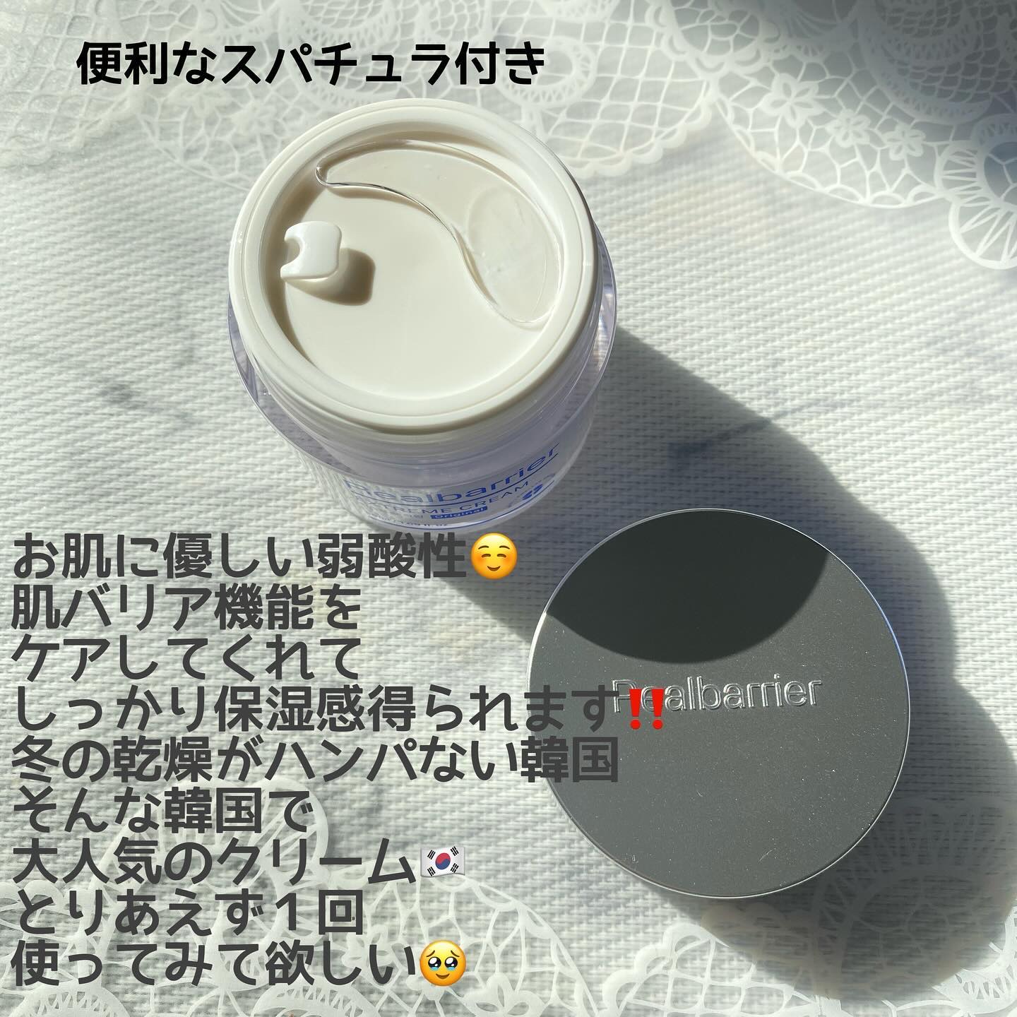 - 韓国発ダーマコスメティック 崩れやすい肌バリアを集中ケア。 バリア機能サポートの高保湿クリーム。 崩れやすいバリア機能をサポートし、乾燥を防ぎます。 べたつかずに肌の表面から角質層までしっかりと保湿しながら、乾燥ダメージを受けた肌をやさしい使い心地で保護します。