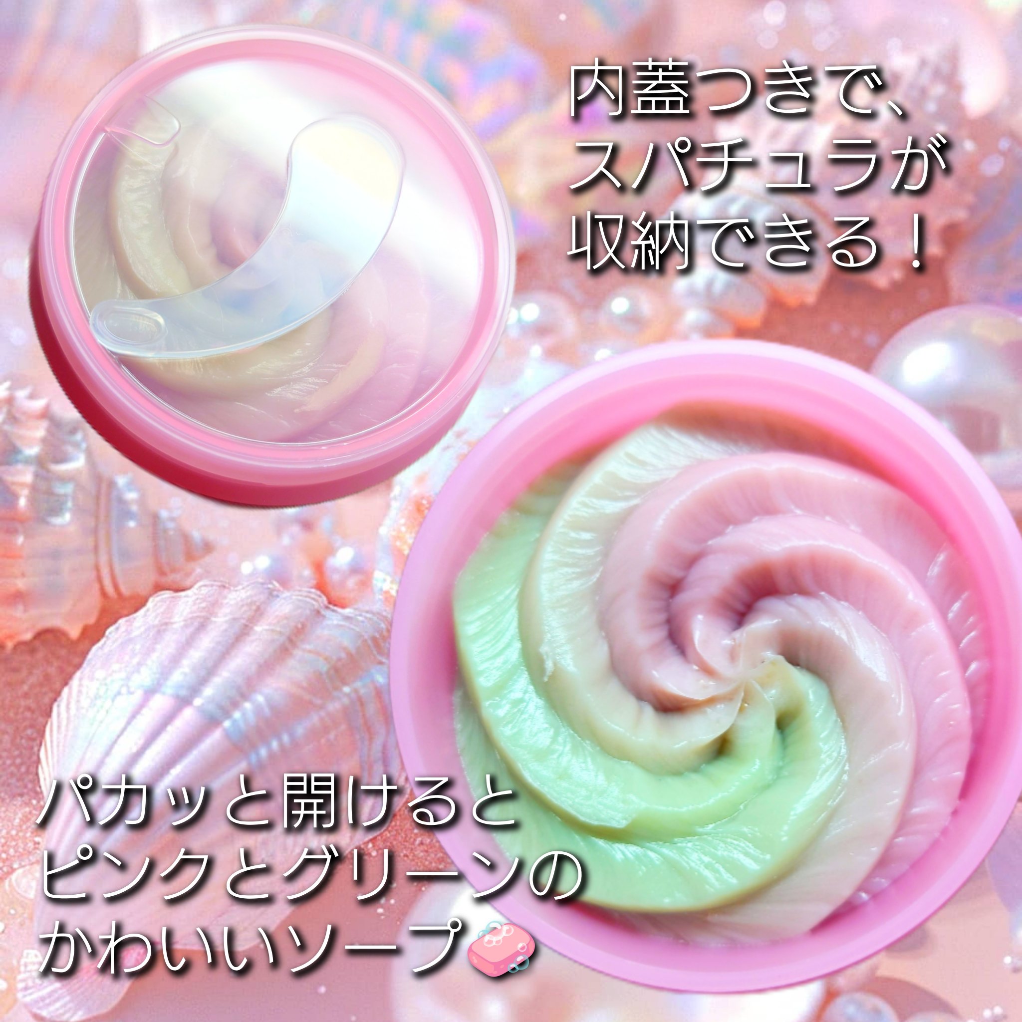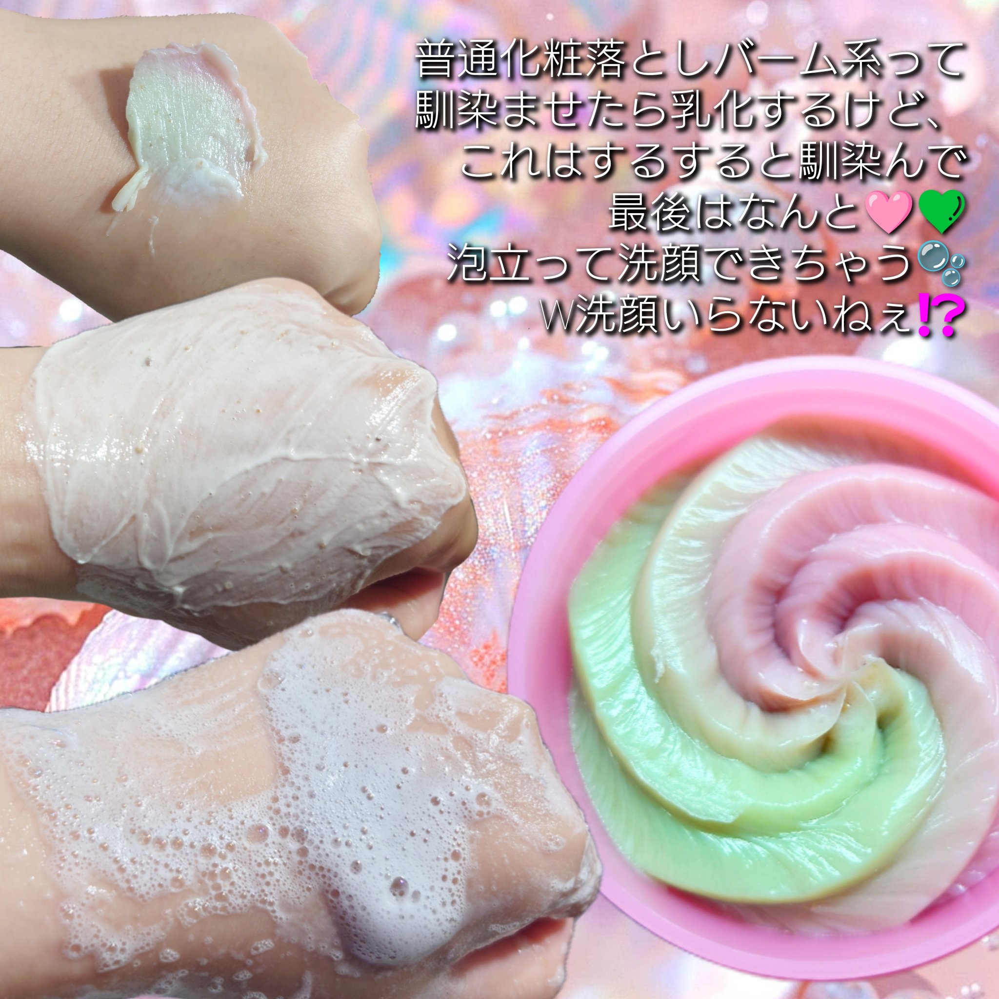 ピンクアロエメレンゲクレンザーはグリーンとピンクの可愛いクレンザーです💁♀️ ピンクアロエを丸ごと込めたよりしっとりしたメレンゲソープ♡ これ一つでクレンジングから鎮静ケア🙆♀️ 微細粉末スクラブ配合で刺激は少なく角質ケア✨ 国内産豆スクラブ、国内産緑豆スクラブ