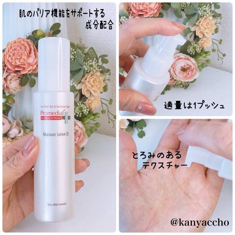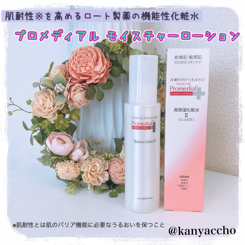 プロメディアルは、ロート製薬から発売された肌耐性を高めるためのスキンケアブランドです💡 モイスチャーローションは、美容液のようにリッチなうるおいを感じることが出来る機能性化粧水です。 無香料、無着色、防腐剤フリー、アルコール(エタノール)フリーという低刺激処方となっており、デリケートな肌にも負担をかけず、優しくうるおいを与えてくれるみたい💗