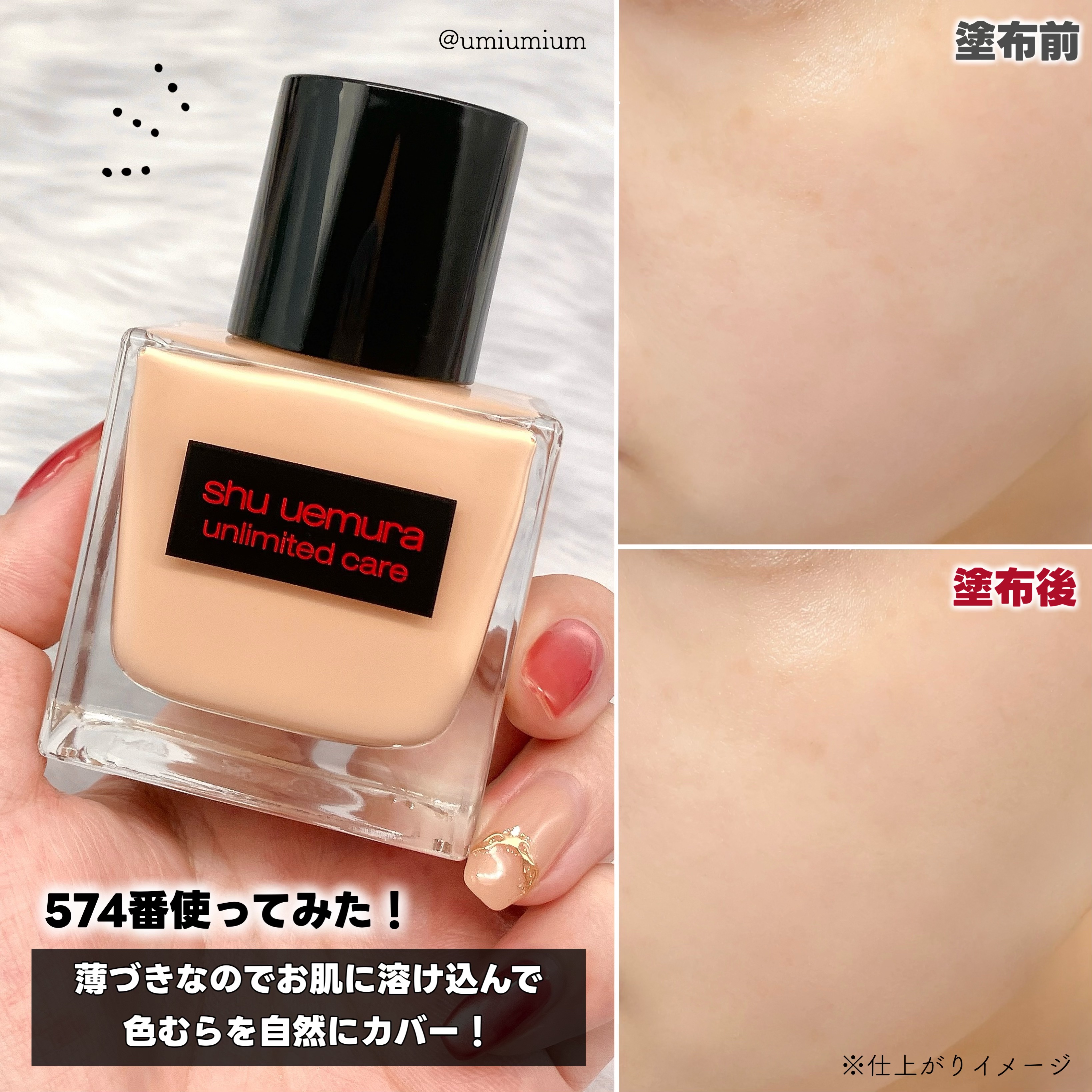 ✧*。shuuemura✧*。アンリミテッドケアツヤセラムファンデーション574やや明るめ¥7,480さらっとして薄づきで伸びがいいのにカバー力まである❗️そしてセラムファンデと言うだけあってつけ心地も軽い✨美容液成分ナイアシンアミド*¹をシ...