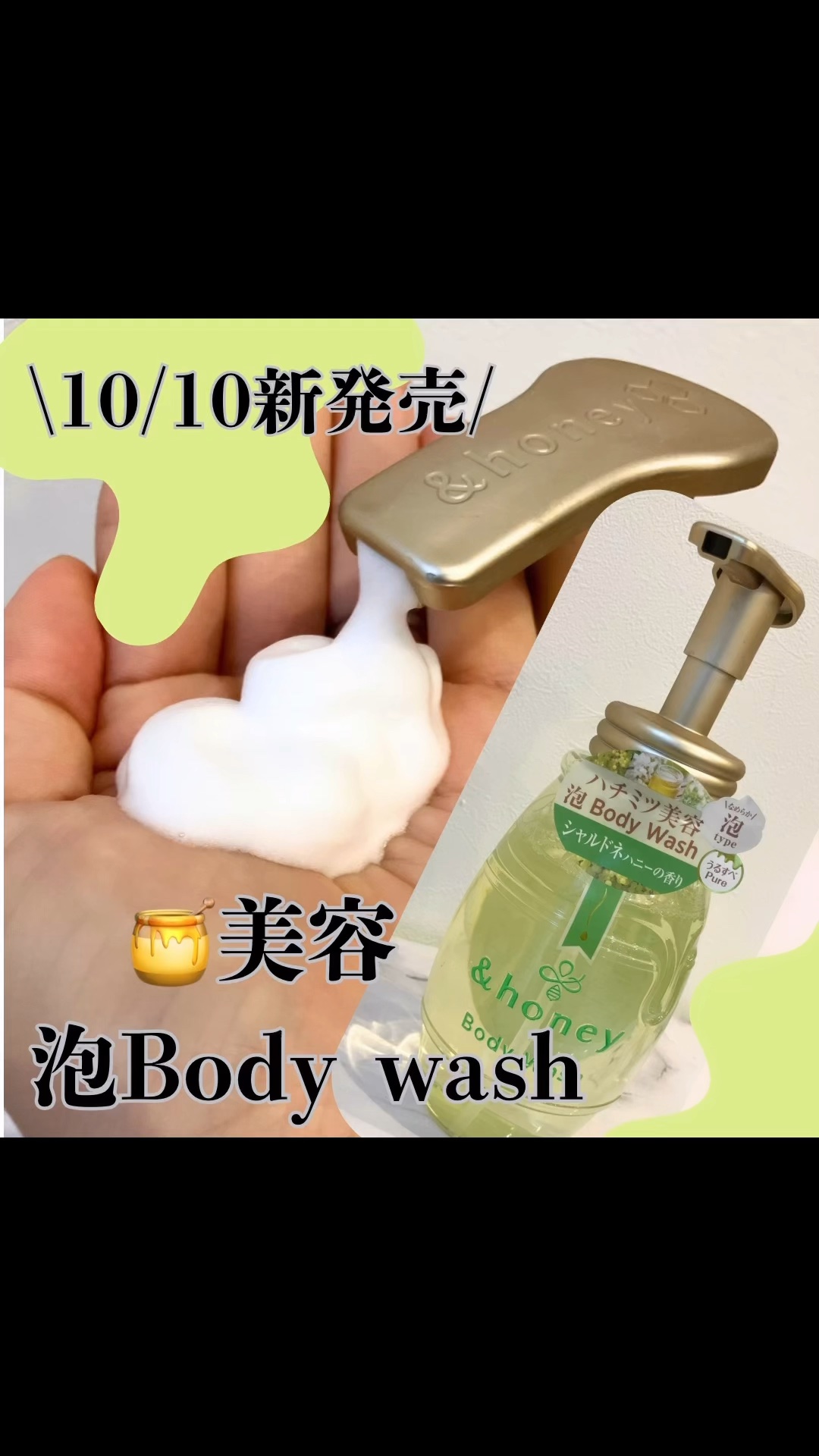 - ハチミツ美容でうるおいを残しながら、 キメ細かくなめらかな泡がやさしくすべすべに洗い上げる泡ボディウォッシュ。 製品の90%以上をハチミツ*1をはじめとして、高保湿ヒアルロン酸*2・アルガンオイル*3などのうるおい成分※1で構成※2し、さらに8つの無添加・フリー処方※3で、「低刺激性処方」を追求しました♡ みずみずしく上品なシャルドネハニーの香りでバスタイムを至福のひとときへ ▼泡ボディがおすすめの方🍯 ○お肌を優しく労わりながら洗いたい方 ○すべすべな仕上がりが好きな方 ○シャルドネの香りが好きな方 サルフェート(ラウレス硫酸Naなど)・鉱物油・アルコール・石油系界面活性剤・ 合成着色料・シリコン・動物実験・防腐剤フリー ※1 保湿・整肌成分の総称 ※2 基剤を除く、水を含む ※3 サルフェート(ラウレス硫酸Naなど)・鉱物油・アルコール・石油系界面活性剤・合成着色料・シリコン・動物実験・防腐剤 *1 保湿 *2 アセチルヒアルロン酸Na(保湿) *3 アルガニアスピノサ核油(保湿)