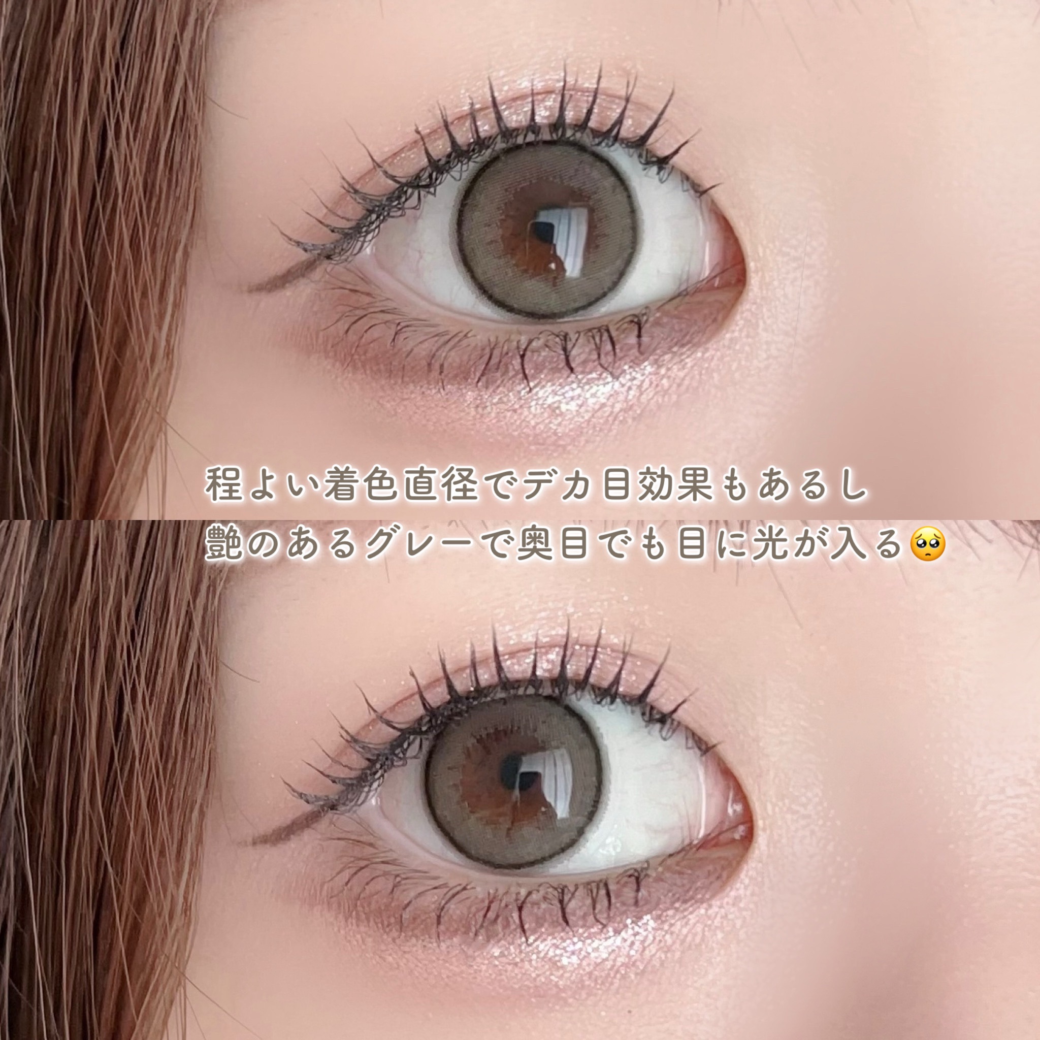着色直径13.8mmと大きめの、しっかり盛りたいときにおすすめのカラコン! 淡いカラーで肌馴染みもよく浮かないし、細ふちのおかげでちゅるんとした瞳に☺︎ ブラウンメイクする時はパールベージュ、ピンクメイクの時はパールスノーグレーと使い分けてます✌🏻 ぜひチェックしたみてね💫