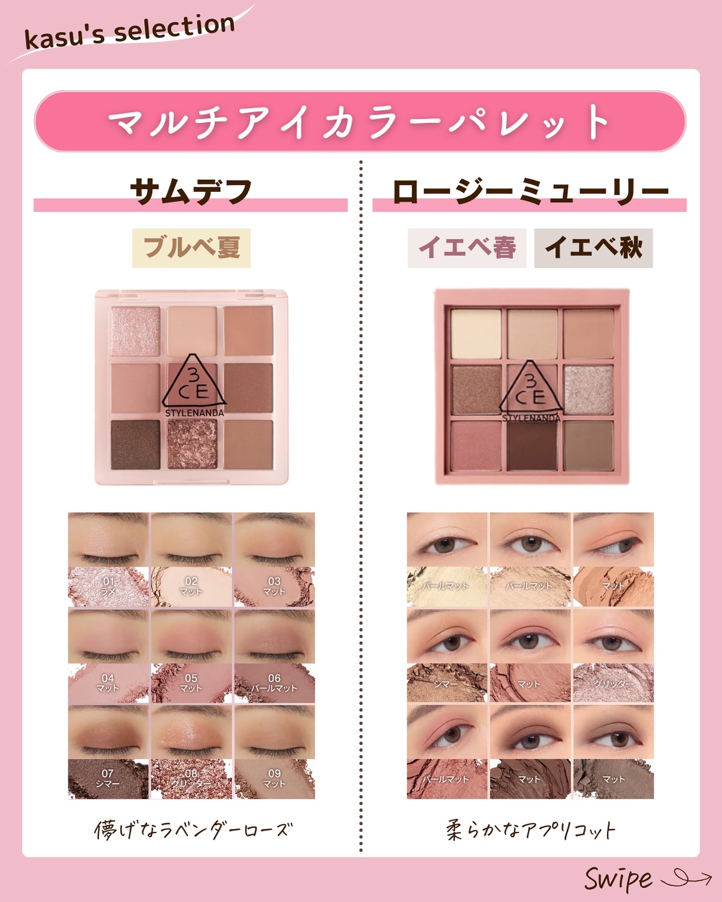 CLIOの『プロアイパレットエアー』からホリデーコレクションの新3色が登場したからパーソナルカラー別に紹介していくよ❣️ ビンクで溢れるホリデーカラー『ローズダイアリーエディション』で可愛すぎるよね✨️ パッケージにオーナメントをモチーフにした可愛いチャームが付いてるのも最高なの!!