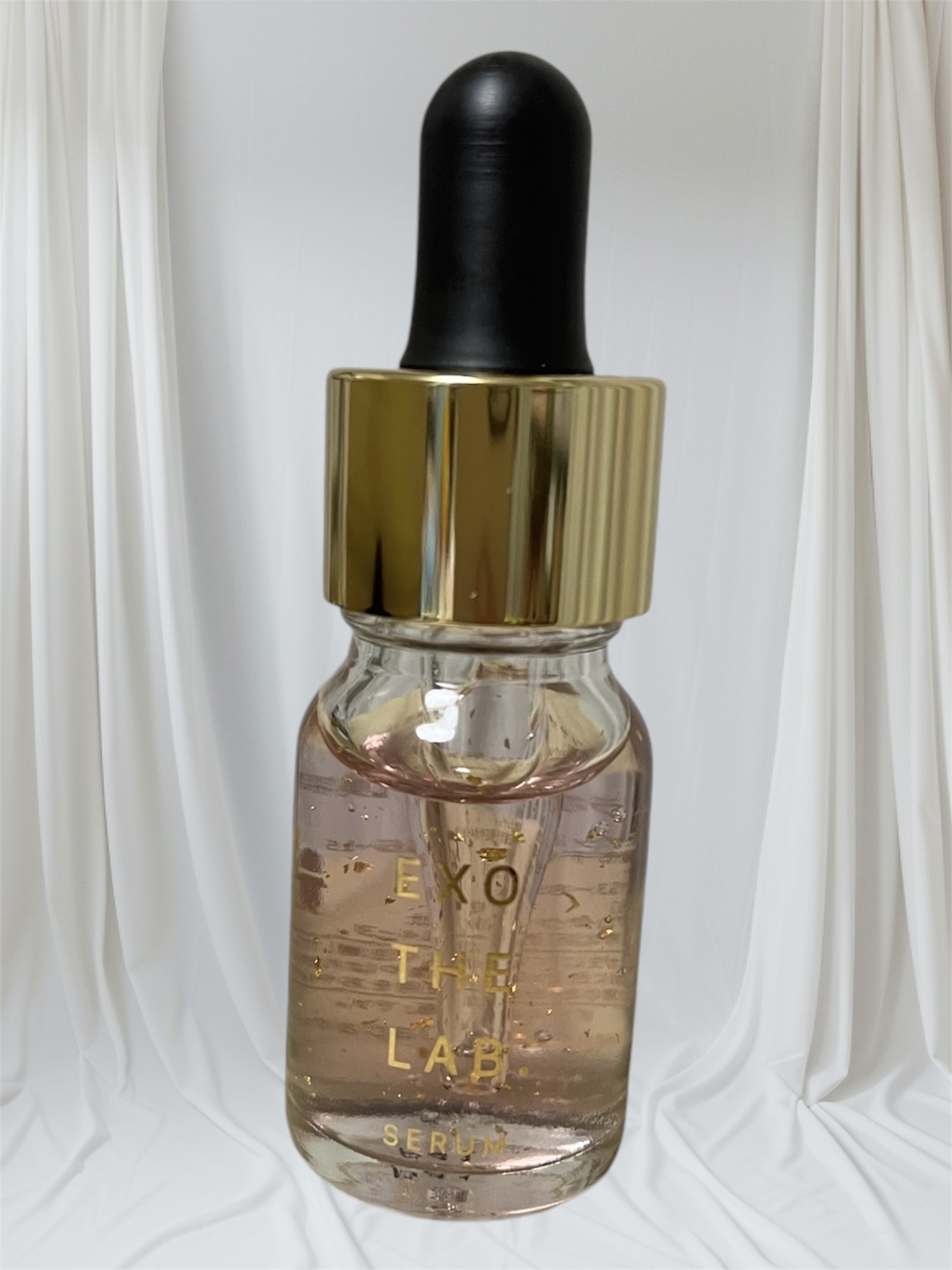 再生医療の研究から生まれた美容液 ボタニカルエクソソームと24K NANO GOLDをたっぷり配合した強力な導入美容液が再生医療の研究から誕生 99.99%純金やコメ発酵液エキスエクソソーム、大豆イソフラボンから生成されるエクオールなどの成分が角質層の細胞にアプローチしてターンオーバーに寄り添ったケアを実現し 伸びがよいテクスチャーで馴染みます 馴染ませた後はベタつきもなくさらっとした仕上がりですが潤いを感じる使用感です