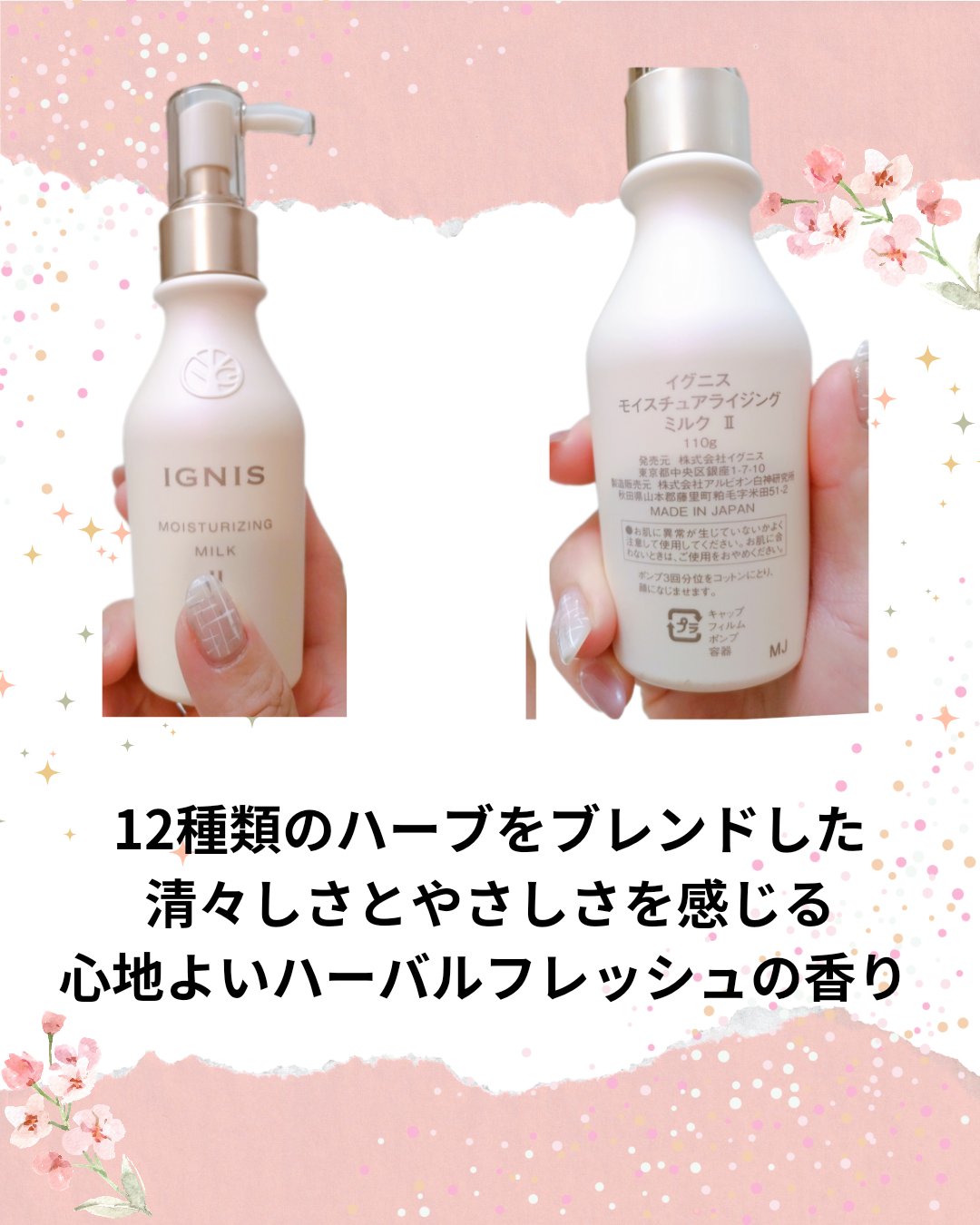 イグニスのハーバルフレッシュの香りが大好きで久しぶりに使いたくなりました♡ ビタミンC誘導体配合の先行乳液。美白ラインとはいえ保湿成分もしっかりと配合されていてなめらかな質感です😊 保湿ラインの化粧水でアルコールフリー。ゆらぎ肌を穏やかにしっとり整えてくれます🌿