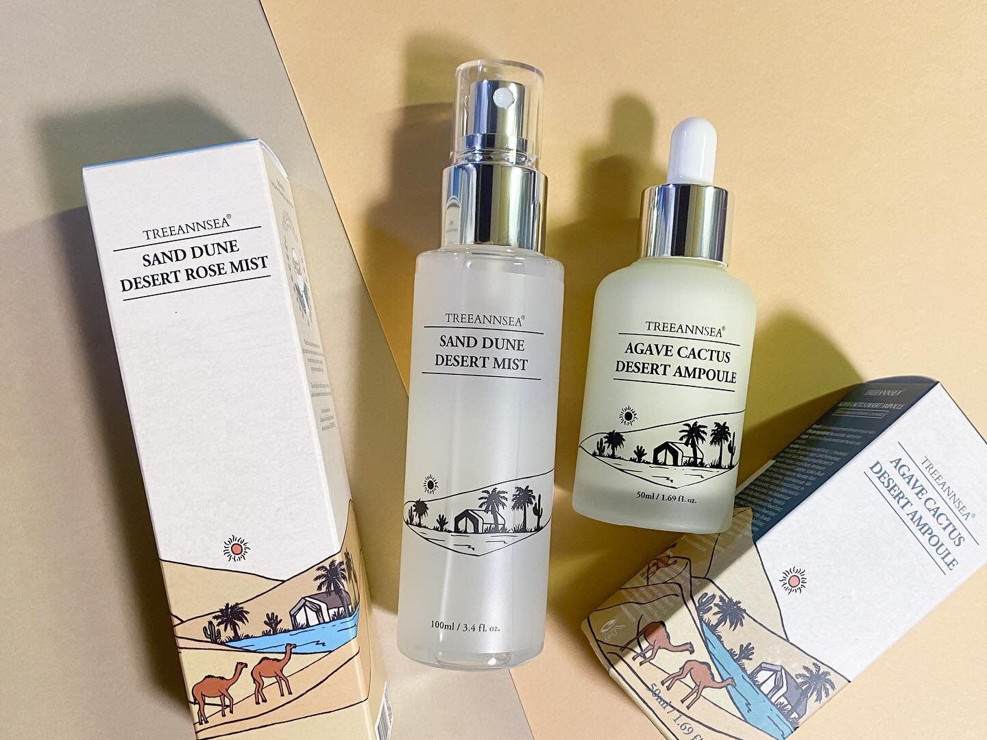 TREEANNSEA(ツリーアンシー)は土(TREE)と海(SEA)、大自然(Mother Nature)から少女・アン(ann)が生まれて肌の老化を遅らせる旅をコンセプトにしたビューティーブランド🌿 保湿力に優れたデザートローズエキスを90%配合したミストで、ベタつかず手軽に水分補給🌟 アガベサボテンを84%以上配合した水分ケアアンプルで、乾燥によりくすんだ肌をなめらかで透明感のある肌に導きます✨