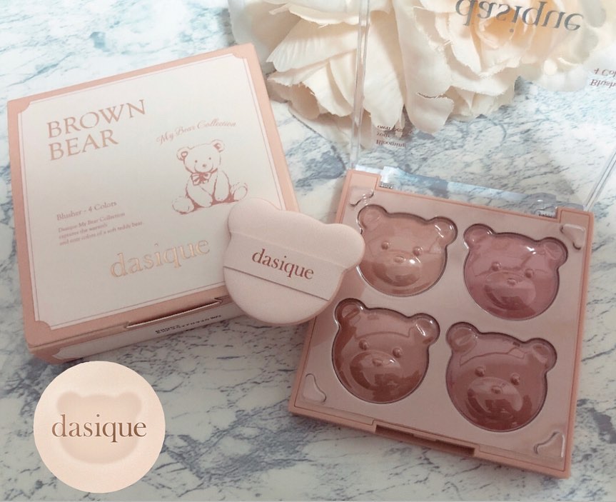 デイジークのマイベアコレクション🧸🤎 情報出た時からこれは買う!って決めてた♡ チークはクリーミーなテクスチャーだけど塗るとさらさらにしあがる! アイシャドウはブラウンメイクが楽しめるブラウンベアにしたよ🐻