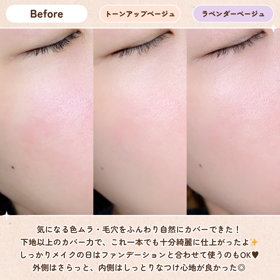 | トーンアップもやりすぎず適度なので白浮きしにくく使いやすいし、肌に馴染ませたあとは肌表面がサラッとするので使用感◎ | 詳細を見る |