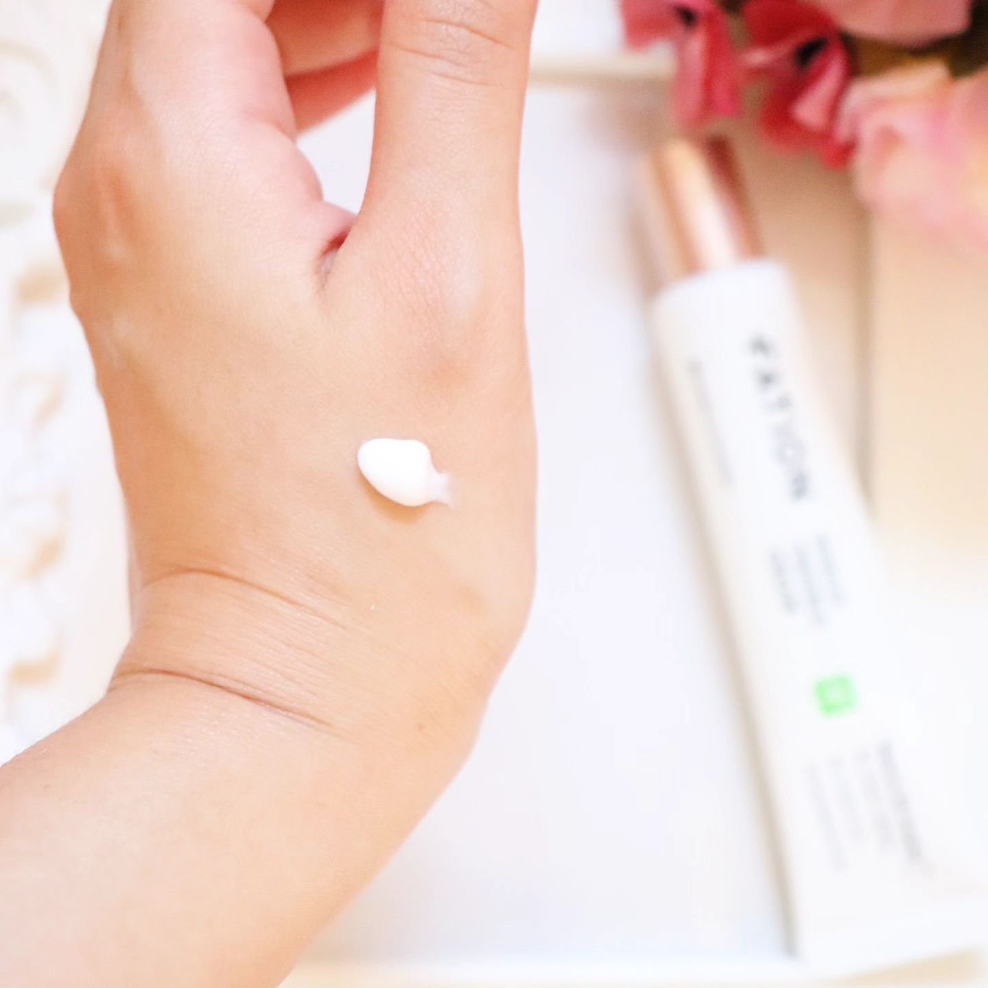 SPF 50 + PA +++と紫外線カット効果も高いのですが、塗り心地は軽いテクスチャーのクリームのようでのびも良く、重たくならないのが良いです😍. 少しだけ外に出るときにもパパッと塗って肌をきれいに見せられて良いです✨️. 自然なトーンアップ効果があるので、首に使って顔と首のトーンの差をなくすのにも良いです💕.