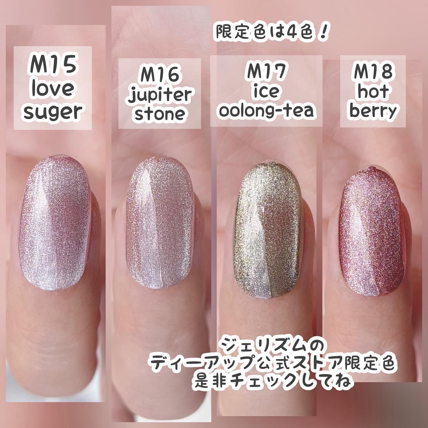 キラキラのマグネットジェルが取扱店舗限定発売されました🎄 まばゆいほどキラキラの輝き…✨ ピンクとイエローの可愛すぎるジェル🤤 動きも良くてスイスイ動くよ✌️ 一度塗りだけどしっかり発色してくれました♡