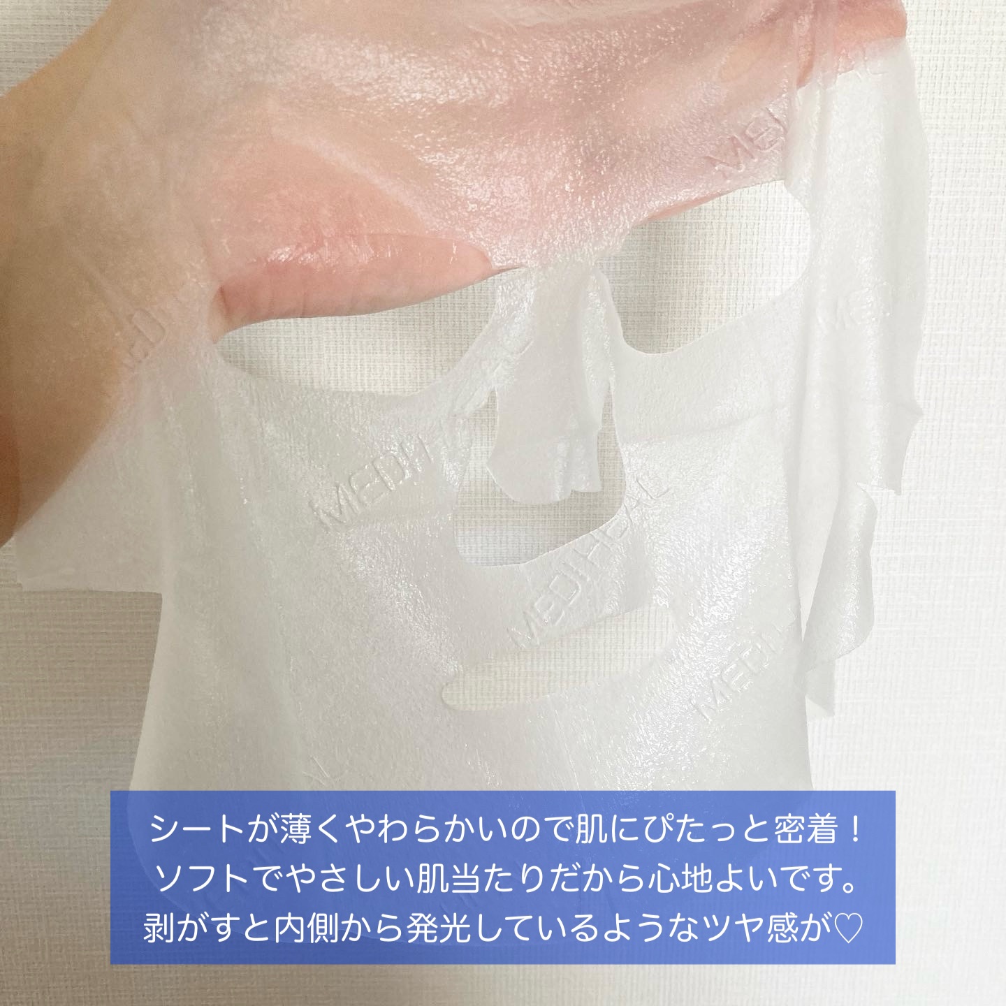 韓国のパックといえばで有名なメディヒール。 最近はドラッグストアで取り扱っているところも多いですよね😳 個包装タイプはとても薄くて密着するシート、袋入りタイプは適度な厚みがあって肌当たりが優しいなめらかなシートで私はどちらの使用感も好きだった◎ 保湿感をしっかり感じられるのはもちろん、潤うことによってツヤやハリも出てくる🫧