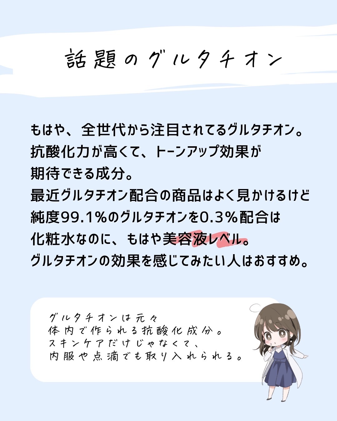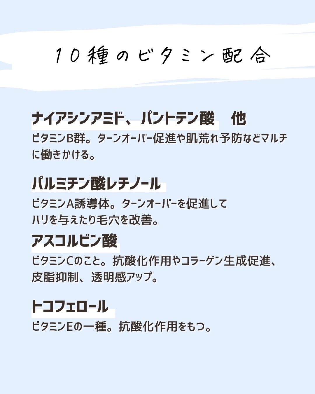 特定の有効成分を試してみたい。美容成分を試したい。そんな時は代用してもいいけど、それって似てるのかな?って思うときが正直ある。 同じ成分があっても実は濃度が違ったり、処方技術が違ったり。技術が違うと使用感も剤型も変わることがあることは知ったうえで使うといいかも。 せっかくプチプラ化粧品を買うならそれはそれで楽しんでほしいから是非念頭にいれてほしいな!!