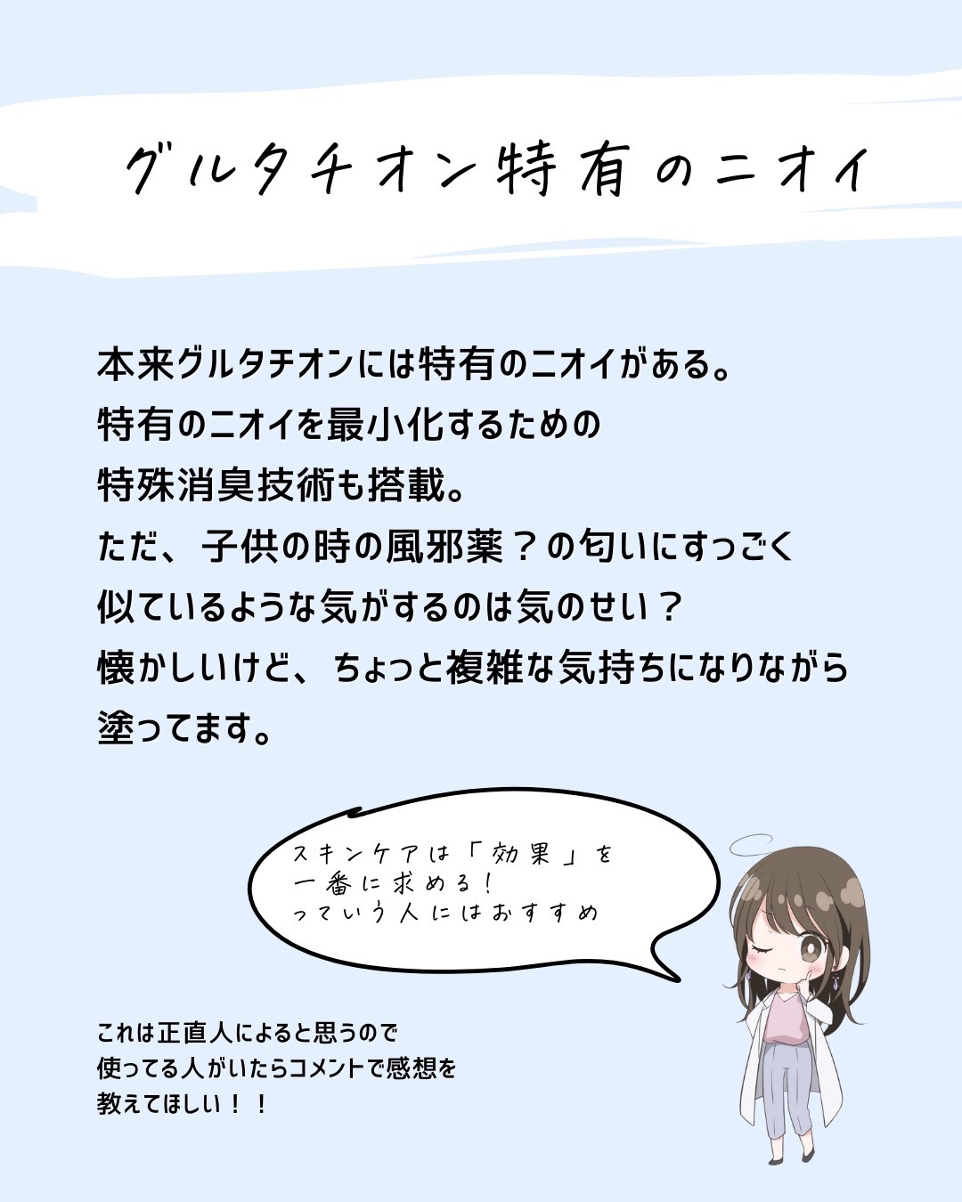 肌が荒れた時にビタミンCがいいとSNSで見かけたというフォロワーさんがいたけど、これは本当に辞めてほしい(濃度にもよるけど) ビタミンCは攻めのケアでもあるから、肌が敏感な時には避けてほしい。 でも、メラニン予防とか毛穴ケアには本当に良い商品でもあると思うから、使い方を間違えずに選択してほしいな!!