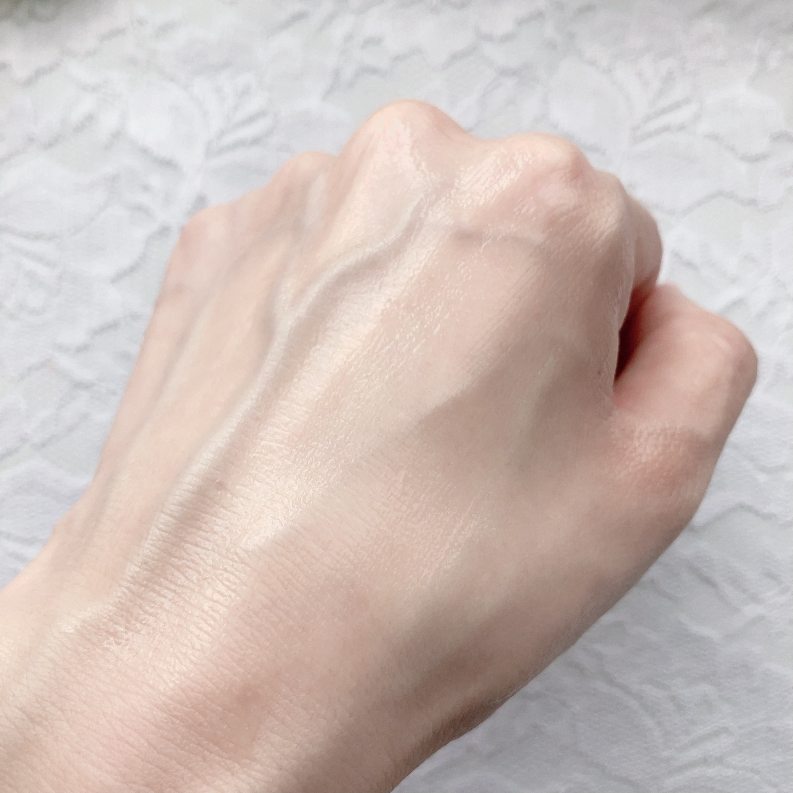 さらさらで伸びが良いテクスチャー。 肌への密着感もあって、ピンクベージュの色みが毛穴のカバーとほんんのりトーンアップも。 クリームのようなテクスチャー。 肌にのせすぎると白っぽくなるので、少しずつ伸ばすのが◎ なめらかテクスチャー。 細かいパールが入ってますが、ギラギラしたりもなく自然な感じ。