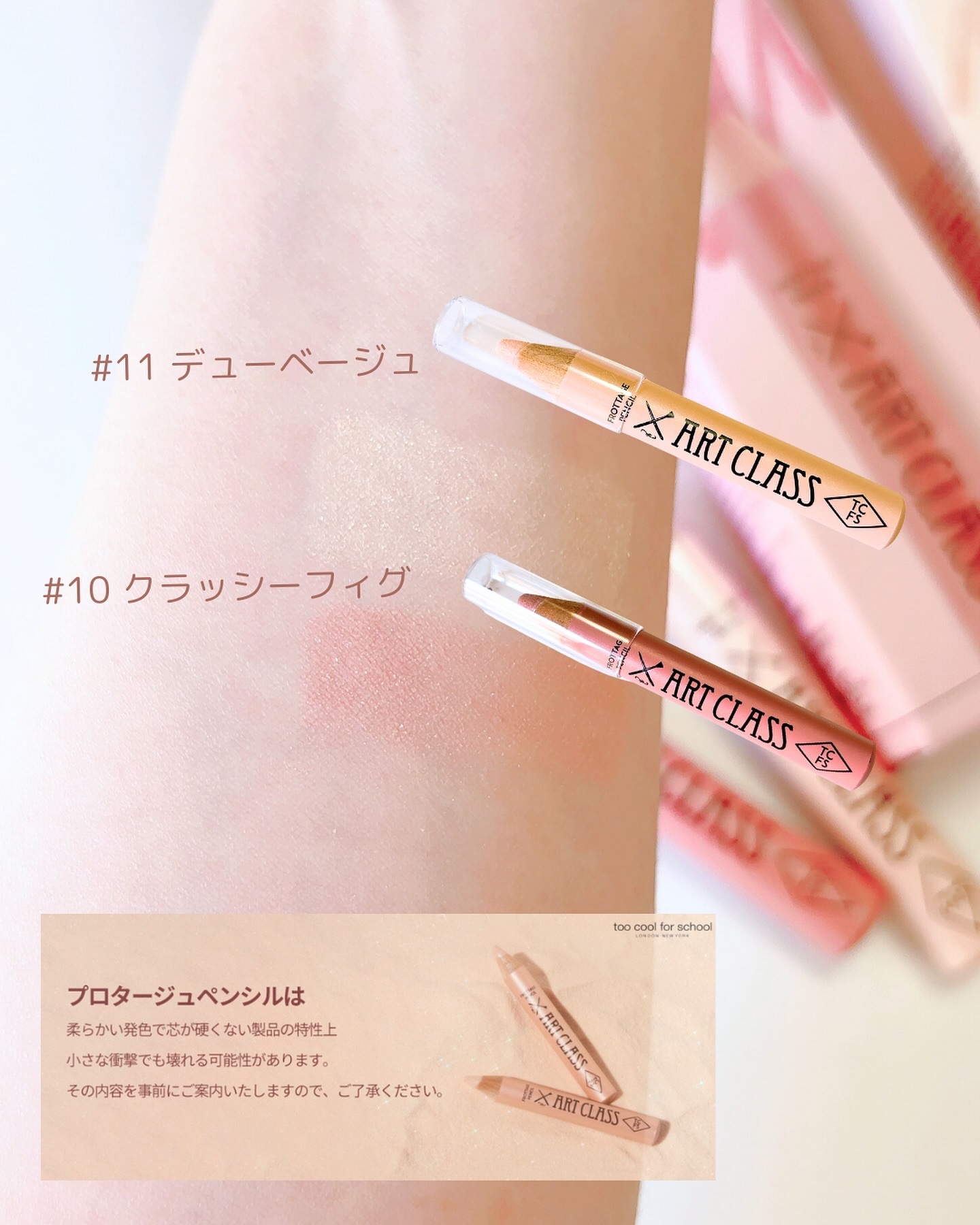 toocoolforschoolアートクラスフロッタージュペンシル♡09シアーヌード♡10クラッシーフィグ♡17タロシフォン涙袋としても使えて、指でぼかしてアイシャドウとしても使えます❤また、チークとしても使えるから凄く便利なペンシル‼テクニ...