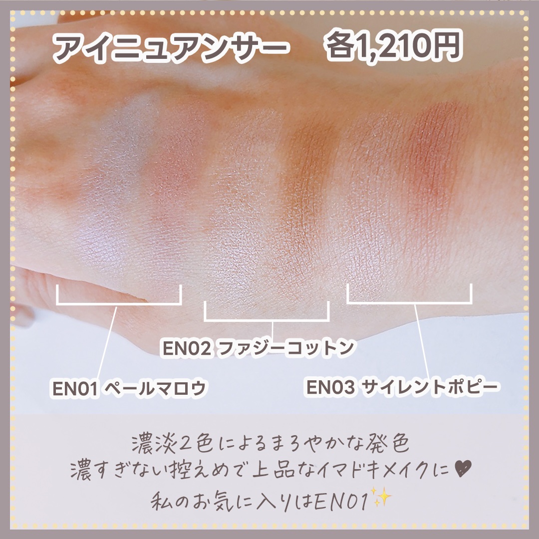 まろやかな色彩で抜け感のある目元に♡ 絶妙2トーンカラーで目元に軽やかな彩りを添える、まろやか発色の“引き算メイグ”アイシャドウ。 印象的な影を仕込むまろやかブレンドカラー。瞳が自然に引き立つ、リキッドアイライナー。 長く、美しい、自然な存在感。繊細な上向きまつげが続く、抜け感ロングマスカラ。