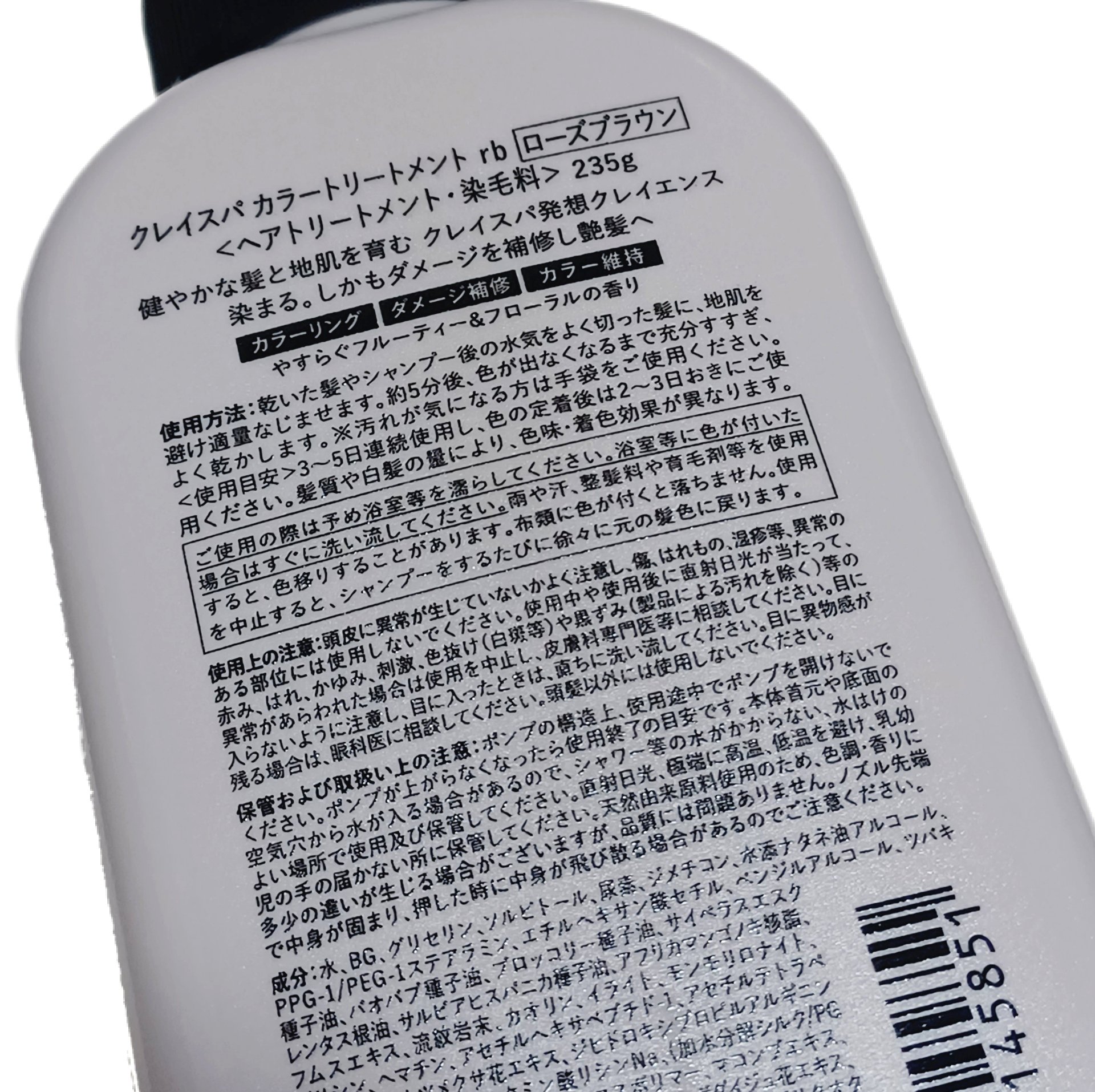 クレイエンスは1回5分で染まる白髪ケア。染まる。しかも、ダメージ補修し艶髪つづく。 1回たった5分!手軽に、負担なく、キレイにカラーリング →髪表面の汚れや余分な皮脂をクレイが吸着。 ローズブラウンは新色なんだとか!!普段からカラーリングはカラートリートメントを使っているのですが、こちらはまず形状がポンプ式でとても使いやすかったです。