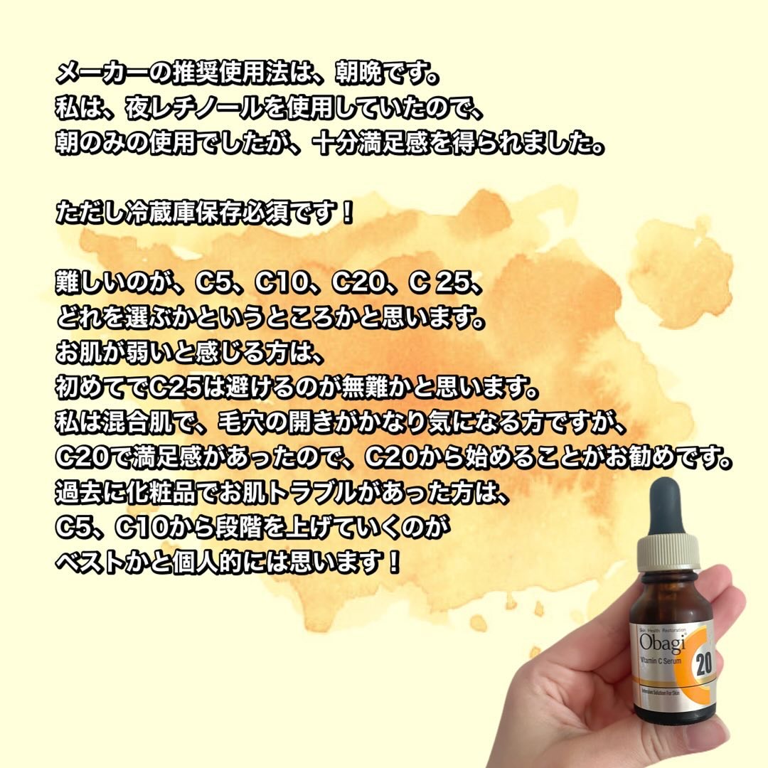- <オバジC20セラム> プロパンジオール、水、アスコルビン酸、エタノール、PG、ベタイン、BG、トコフェロール、3-O-エチルアスコルビン酸、ツボクサエキス、アーチチョーク葉エキス、酵母エキス、アッケシソウエキス、セリン、グレープフルーツ果実エキス、グリセリン、ジラウロイルグルタミン酸リシンNa、PPG-6デシルテトラデセス-30、香料