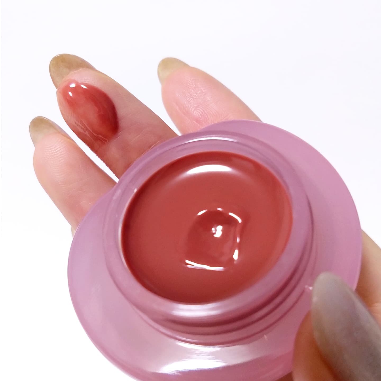 プランプ効果はないのに唇の縦ジワが目立ちにくくなってぷっくりつやんとした仕上がりになるからめちゃ可愛い🥹💕 今回のシリーズは春向きの落ち着いたピンク系カラーでブルベ夏の私にはしっくりくる大好きな3色でした。 蓋を回さずに上に外すとシリコンが出てくるのでそこでぼかして使えます。