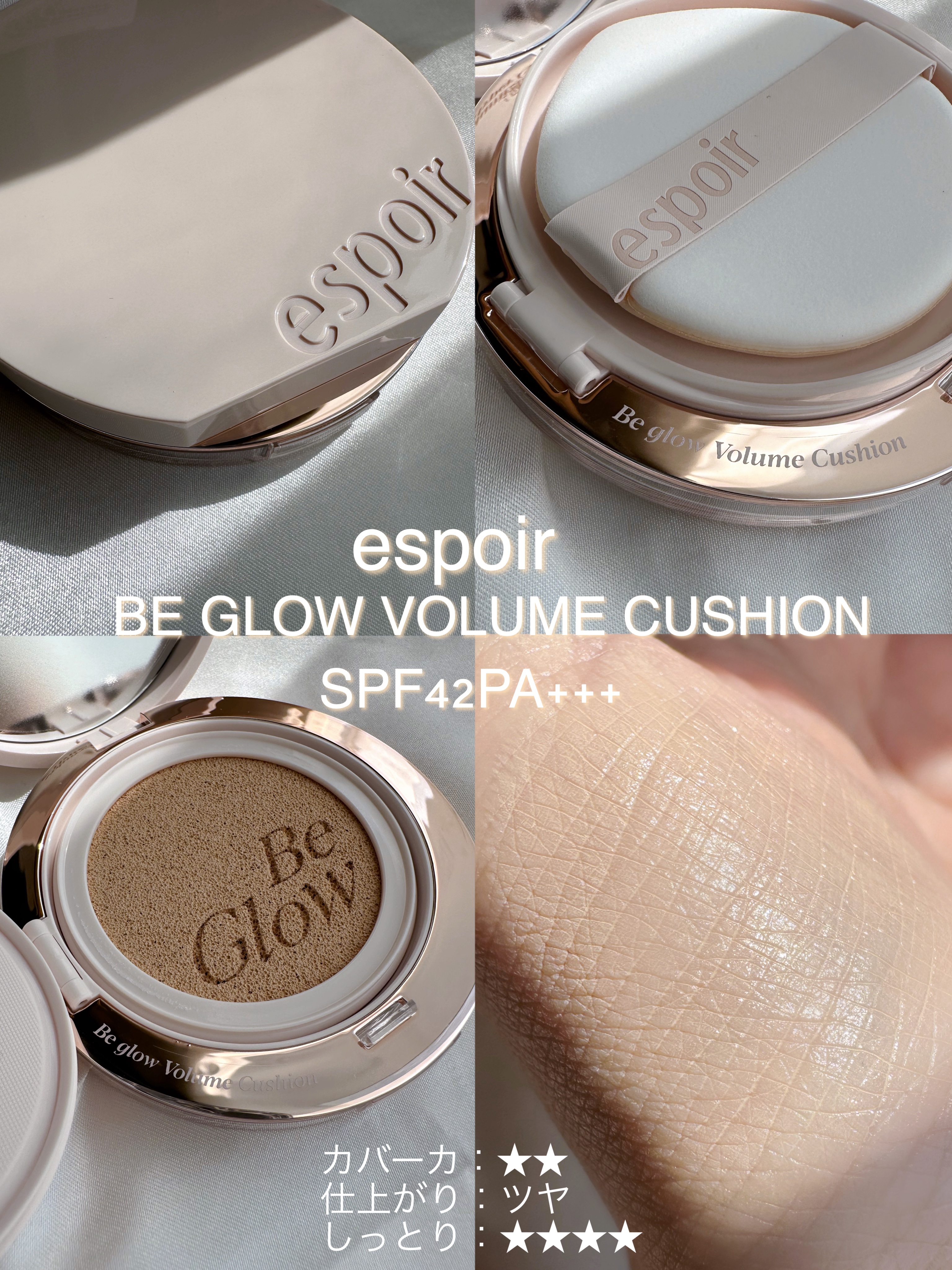 - SPF42 PA+++ ① 新素材ボリュームグロー技術とグルタチオン成分※1で、塗布すればするほどより華やかに輝く※2! #ハイパーグロー ②肌バリアサポート成分と肌にハリを与えるペプチド配合でハリのある肌に導く #水分ハリ肌 ③ 長時間美しい透明感が続くツヤクッション ④ 敏感になりやすい肌のことを考えた、低刺激※3 ※1うるおいにより肌にツヤを与える ※2メイクアップ効果による ※3すべての肌に刺激が起きないというわけではありません。