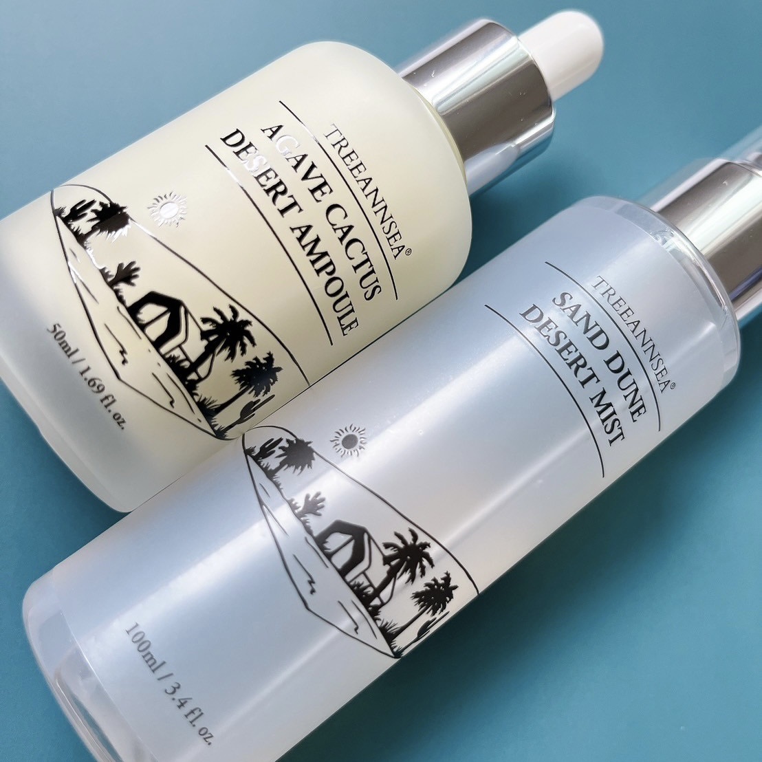 TREEANNSEA(ツリーアンシー)は土(TREE)と海(SEA)、大自然(Mother Nature)から少女・アン(ann)が生まれて肌の老化を遅らせる旅をコンセプトにしたビューティーブランド🌿 保湿力に優れたデザートローズエキスを90%配合したミストで、ベタつかず手軽に水分補給🌟 アガベサボテンを84%以上配合した水分ケアアンプルで、乾燥によりくすんだ肌をなめらかで透明感のある肌に導きます✨
