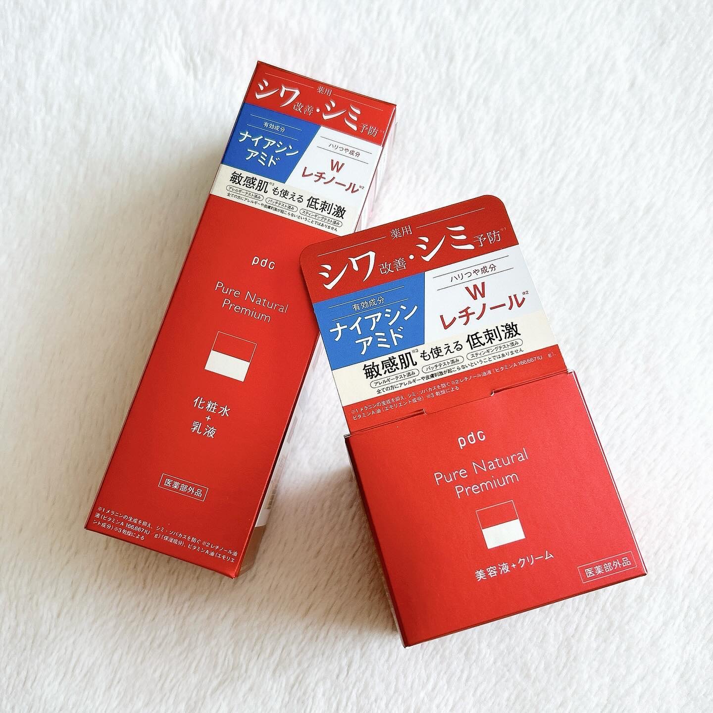 コスパの良いエイジングケア※スキンケア探してるならコレ🫧 有効成分ナイアシンアミド、Wレチノールとセラミド(保湿成分)配合✨ ピュアナチュラルプレミアムリフティングエッセンスローションは化粧水+乳液の乳白色のとろみのあるテクスチャーでベタつかずしっかり浸透🫧