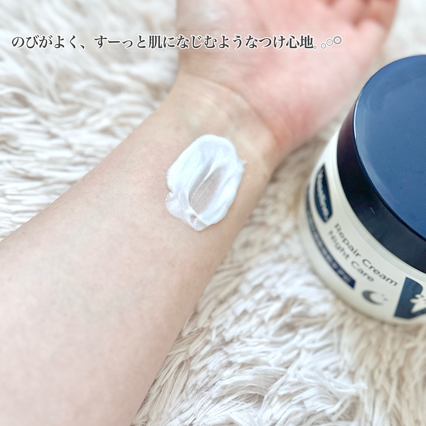 ヴァセリンから、超乾燥肌向けのナイトクリームが登場! べたつかずにスーッと肌になじむクリームが、超乾燥肌にも浸透し、うるおいを与えます。 保湿力がとにかく高くてしっとりもちもちの肌にしてくれます✨ 私は夜使いましたが、朝起きてもしっかり保湿されてました✨ 香りも良いので使う度に癒されます🍀*゜ 大容量なのでコスパも良いのが嬉しいです🙌
